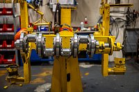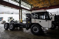 Cesta každé nové Tatry začíná v srdci kopřivnické továrny stavbou unikátního podvozku. Vše startuje spojením náprav s centrální nosnou rourou, čímž vznikne pověstná páteř vozidla, která se následně v rámci karosovací linky spojí s rámem.
