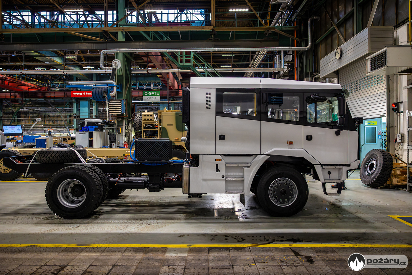 Teprve po návratu z terénu projde vozidlo finální diagnostikou a je připraveno k expedici k výrobcům nástaveb, kteří holý podvozek promění v hotový hasičský speciál.