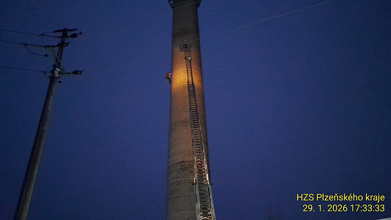 Od odpoledních hodin zasahovali hasiči u záchrany osoby na nejvyšším ochozu komínu ve Strašicích. Mladý muž chtěl ukončit svůj život skokem dolů.