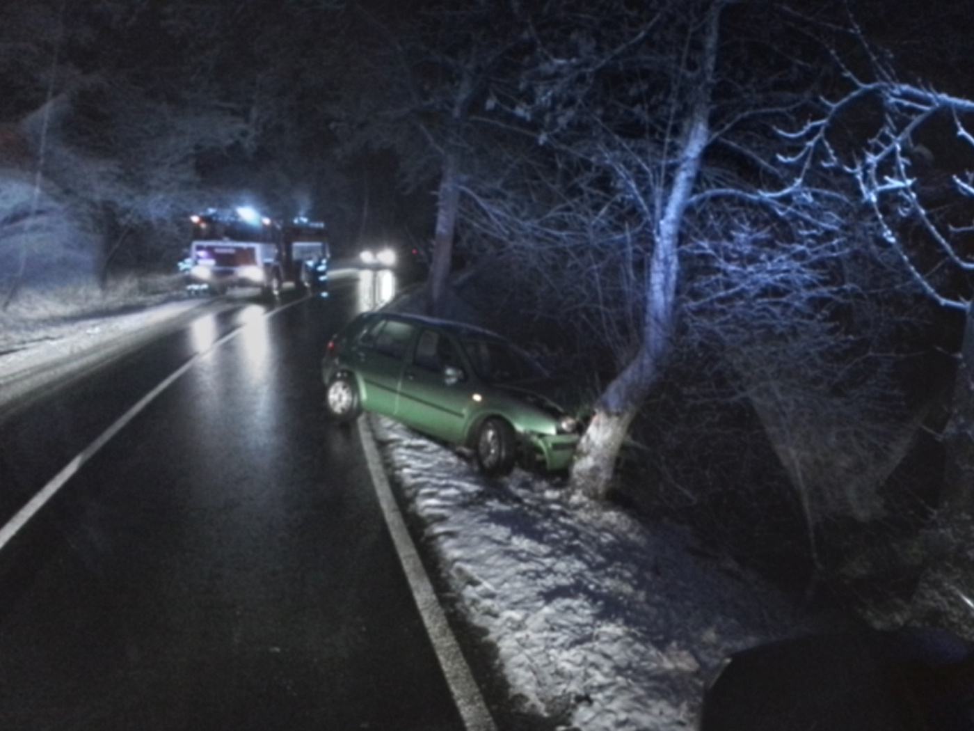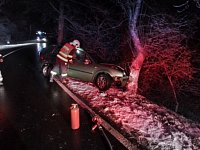 Profesionální jednotka ze Štětí vyjela do Hošťky spolu s místní JSDH. Auto tam narazilo do stromu. Vůz byl po příjezdu jednotek zamčený a nikdo se v něm nenacházel. Hasiči pod vozidlo umístili rohož na zachycení případného úniku pohonných hmot.