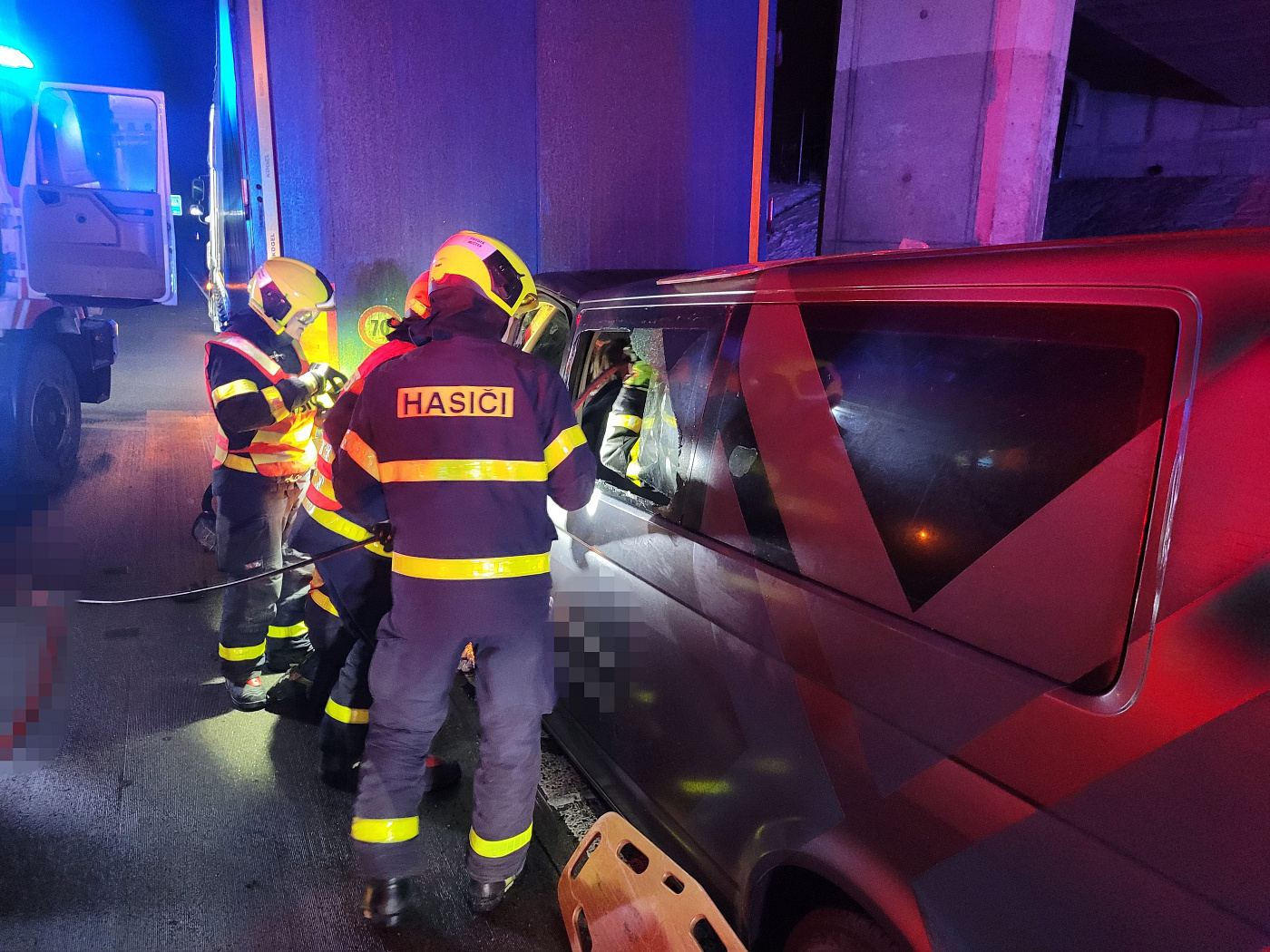 V dodávkovém vozidle cestovalo devět osob, z nichž tři museli hasiči vyprostit. Jednalo se o řidiče a dva spolujezdce na předních sedadlech. K tomu bylo nutné použít hydraulické vyprošťovací nástroje, zároveň musela být komunikace po dobru zhruba 20 minut uzavřena. Vyproštění byli následně předáni do péče zdravotníků.