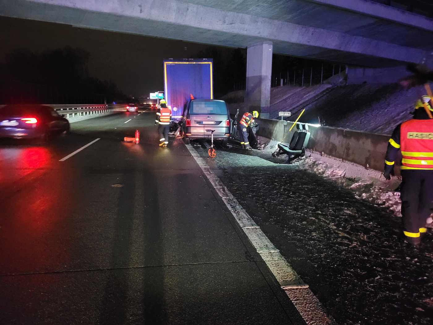 Dvě jednotky hasičů zasahovaly v noci na pátek 30. ledna u vážné dopravní nehody na 47. kilometru dálnice D48 ve směru na Český Těšín. Došlo zde ke střetu kamionu a dodávkového automobilu.