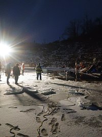 Za pomoci zvedacích vaků a odčerpáváním vody z trupu, bylo pomalu vyzdvihnuto plavidlo ze dna. Zásah ztěžuje komplikovaný přístup ke břehu a nízká teplota.