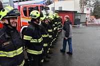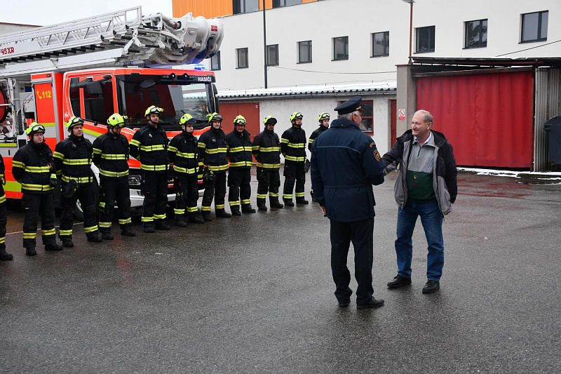 Na centrální hasičskou stanici se s ním přišli rozloučit denní příslušníci a zaměstnanci územního odboru, někteří kolegové z mezisměnového volna a právě sloužící četa B z centrální stanice Nymburk i pobočné stranice Milovice. Těm ale byl, bohužel, v úvodu slavnostní chvilky, ohlášen výjezd k mimořádné události, a tak se z rozlučky museli vzdálit…