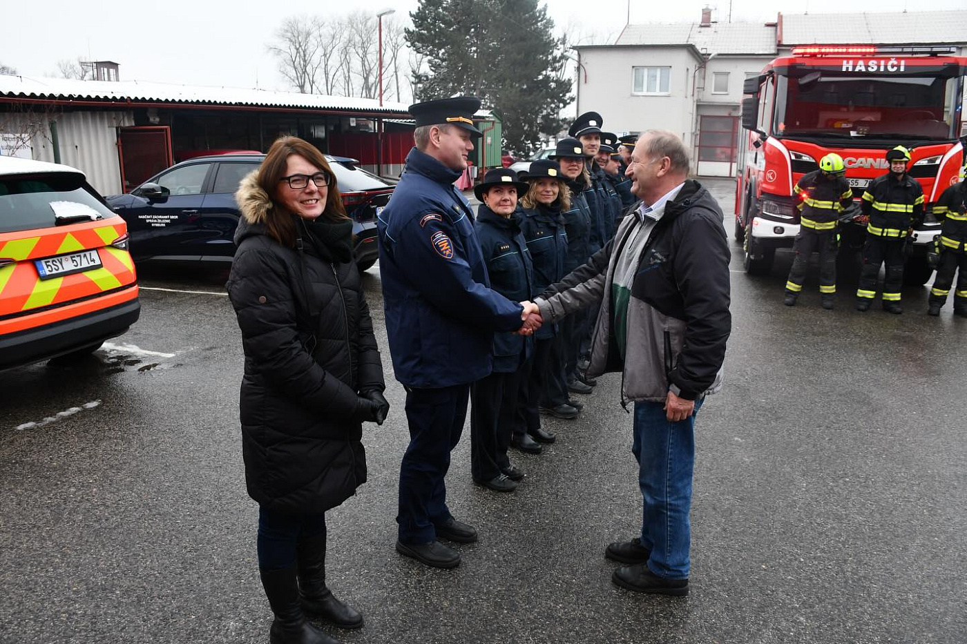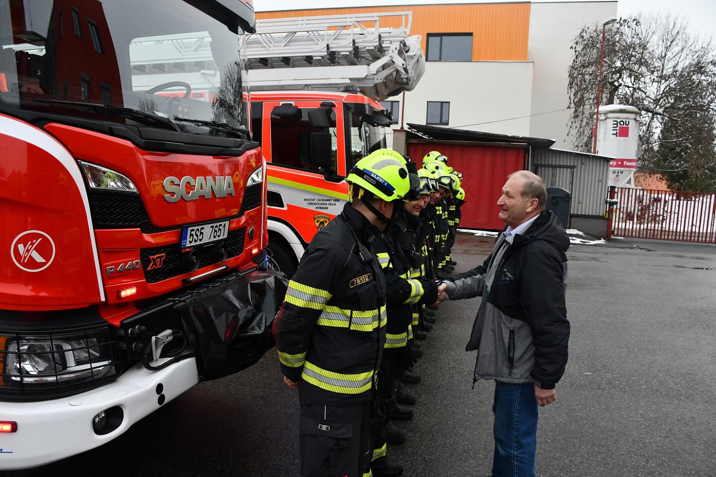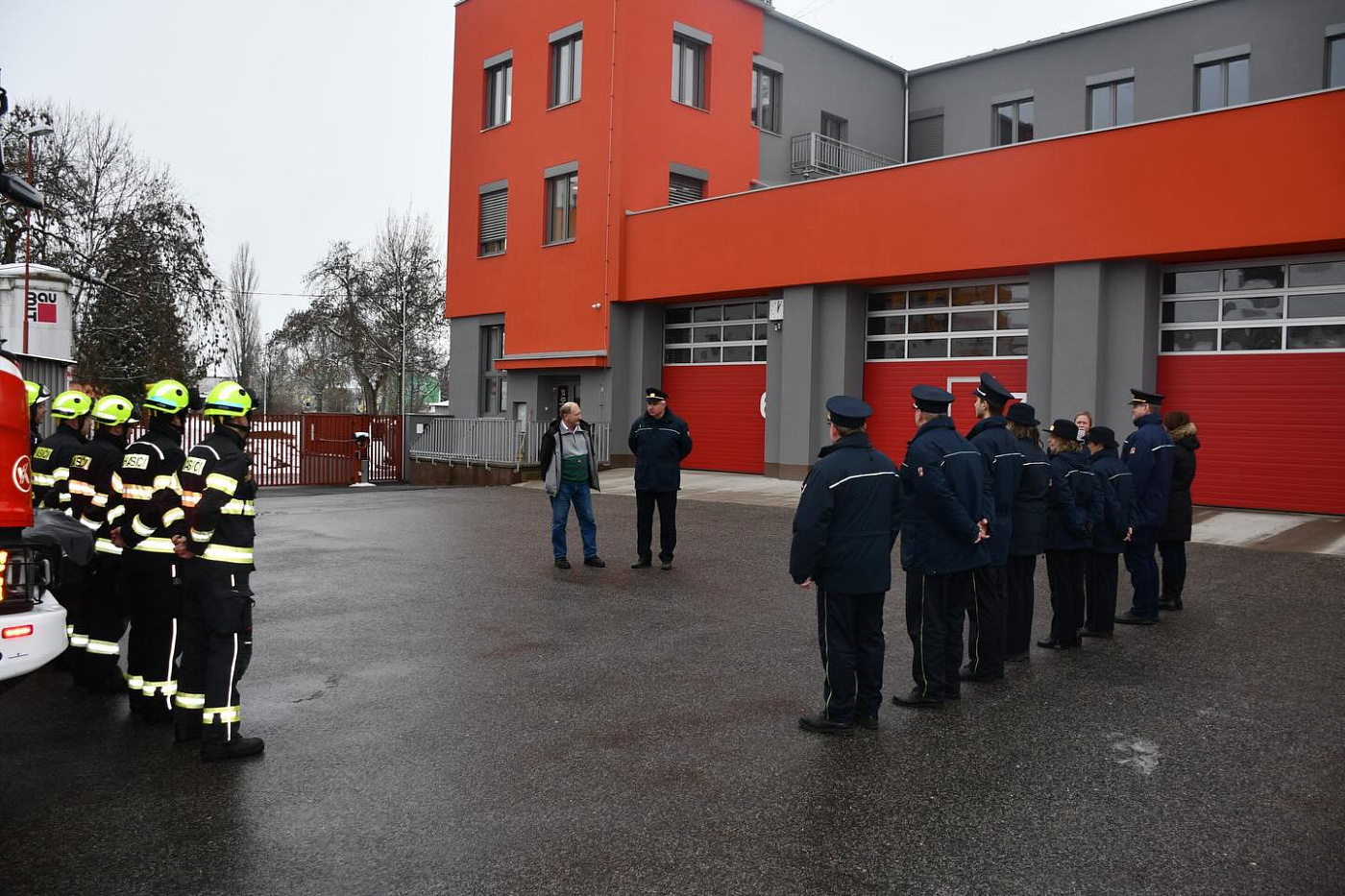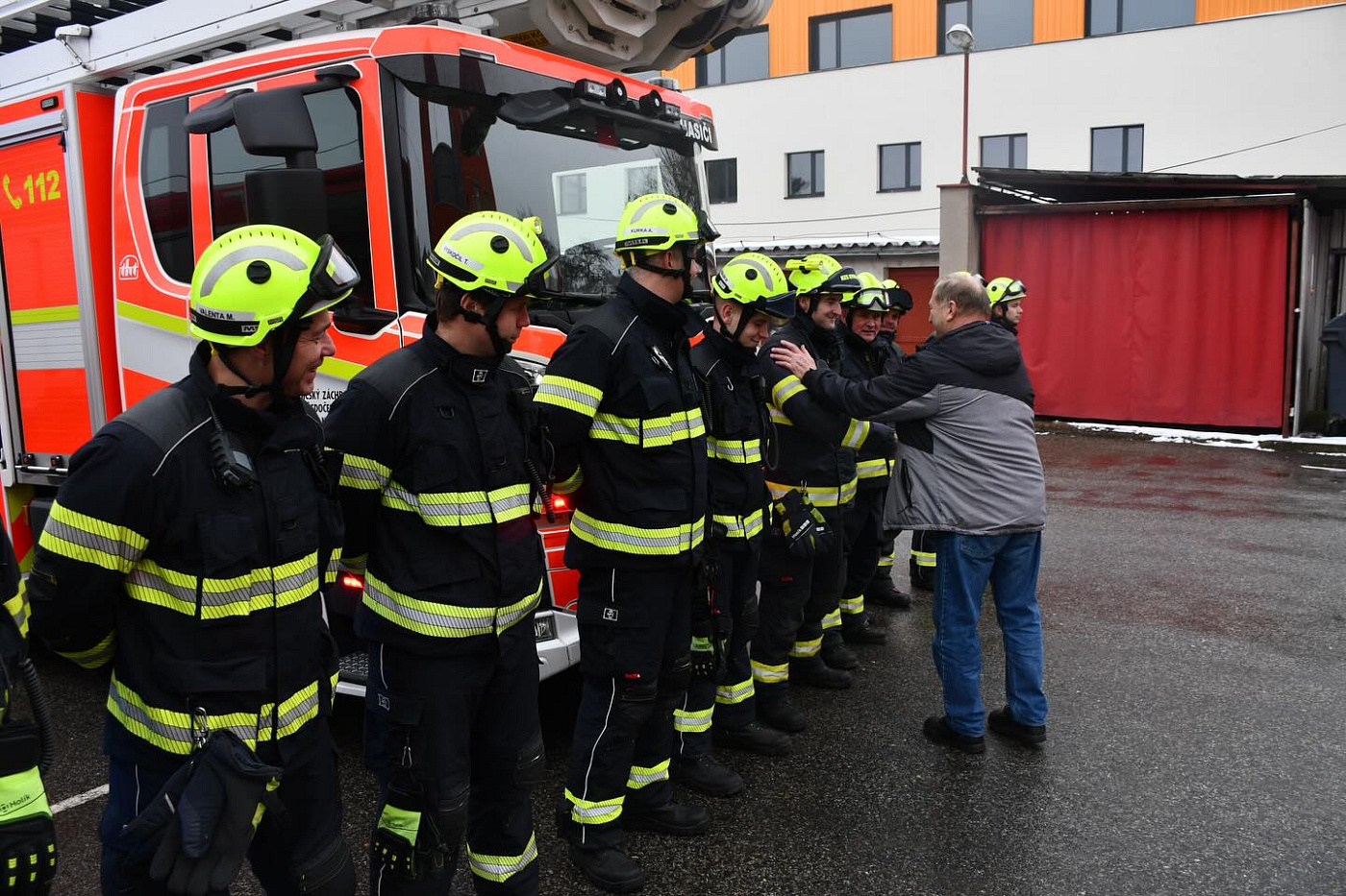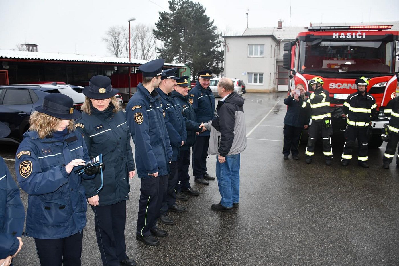 Na centrální hasičskou stanici se s ním přišli rozloučit denní příslušníci a zaměstnanci územního odboru, někteří kolegové z mezisměnového volna a právě sloužící četa B z centrální stanice Nymburk i pobočné stranice Milovice. Těm ale byl, bohužel, v úvodu slavnostní chvilky, ohlášen výjezd k mimořádné události, a tak se z rozlučky museli vzdálit…