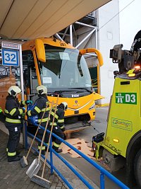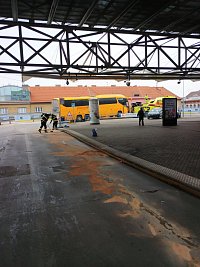 Na autobusovém nádraží na střeše OC Mercury v Českých Budějovicích zasahovali hasiči u autobusu, kterému prasklo řízení. Vytekl z něj motorový olej. Olejové skvrny hasiči zasypali sorbentem a uklidili. Nepojízdný autobus byl odtažen.