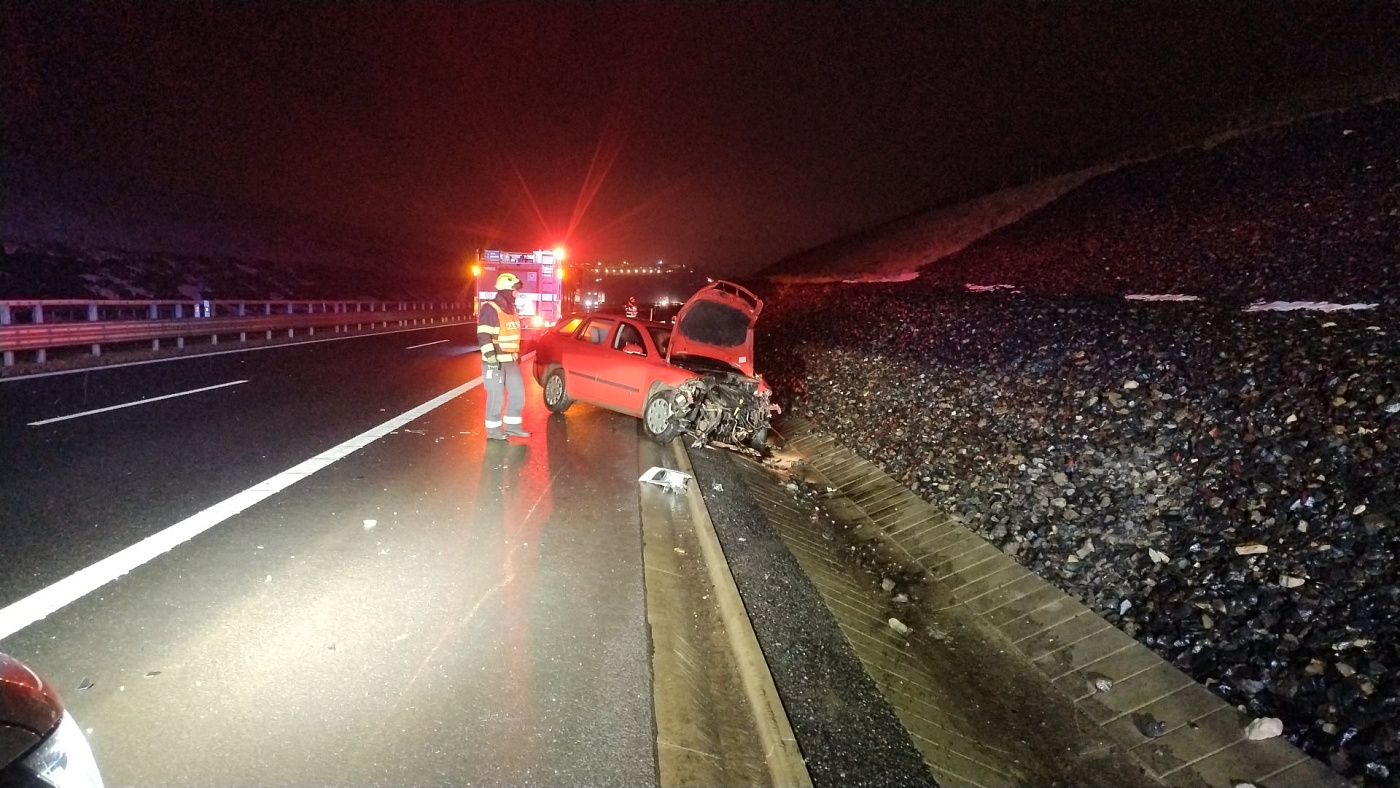 Na D7 v katastru Chlumčan havaroval osobní automobil, skončil v odstavném pruhu. HZS Ústeckého kraje Sdílet