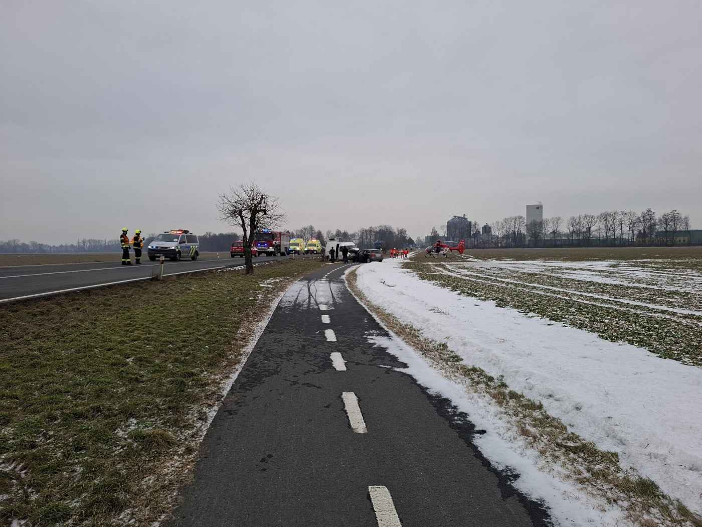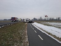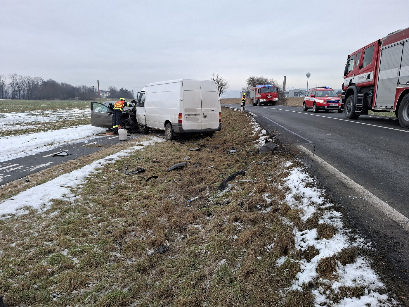 U vážné dopravní nehody dodávky a osobního automobilu zasahují hasiči u Nové Dědiny, místní části Uničova. Při střetu se zranili tři lidé, hasiči jim poskytli první pomoc a předali je do péče záchranářům. Asistovali při transportu do vrtulníku LZS. Kyvadlově řídí dopravu.