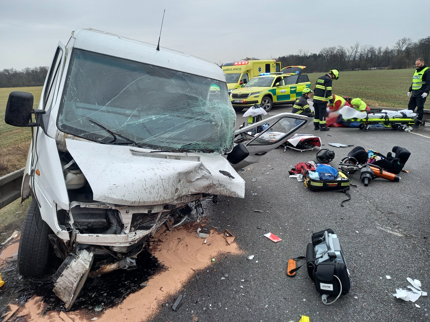 Dvě zraněné osoby skončily v péči zdravotnické záchranné služby. Řidič osobního vozidla byl ve vozidle zaklíněn a hasiči jej museli z vozidla vyprostit.