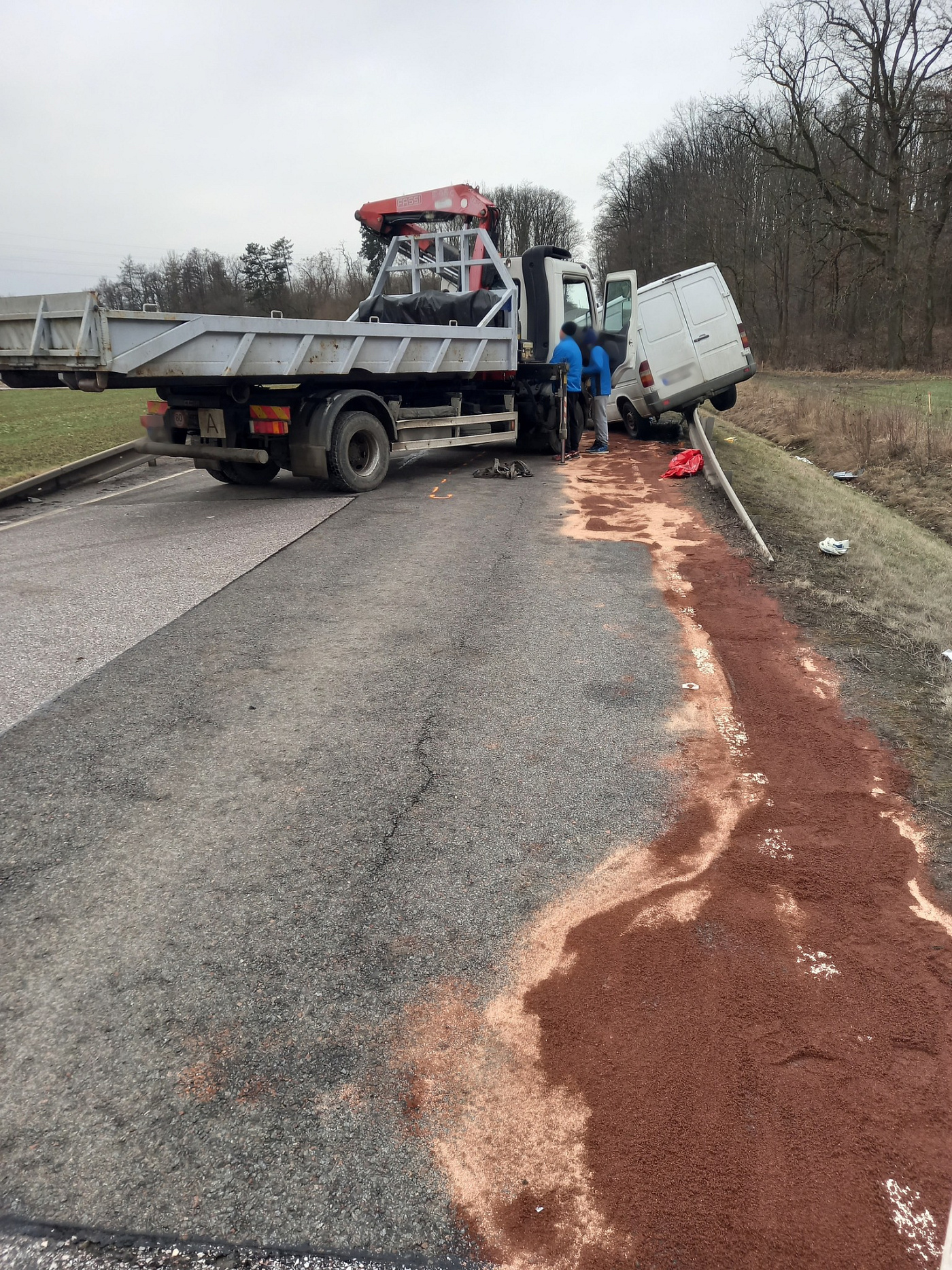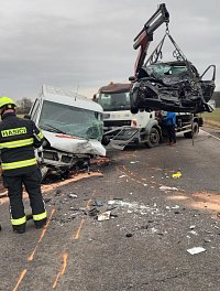 K nehodě osobního vozidla, dodávky a nákladního vozidla vyjížděly v 10 hodin dvě jednotky hasičů. Ke střetu vozidel došlo na silnici II/318 za Častolovicemi směrem na Solnici.