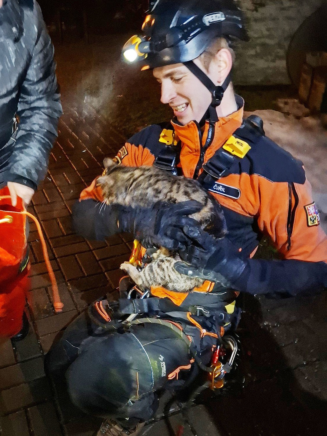 Do Libiny na Šumpersku, vyjížděli hasiči k záchraně kočky ze špice smrku. Do hustého stromu zhruba do výšky sedmi metrů se pro zvíře vydal hasič-lezec, kterému se po pár minutách vyplašenou micinu podařilo odchytit. V bezpečí ji pak předal šťastné majitelce.