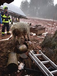 Do části Volanov vyjížděli profesionální hasiči ze stanice Trutnov, na tísňovou linku byl ohlášen pád mladého býčka do zajištěné jímky uvnitř dřevěného přístřešku.
