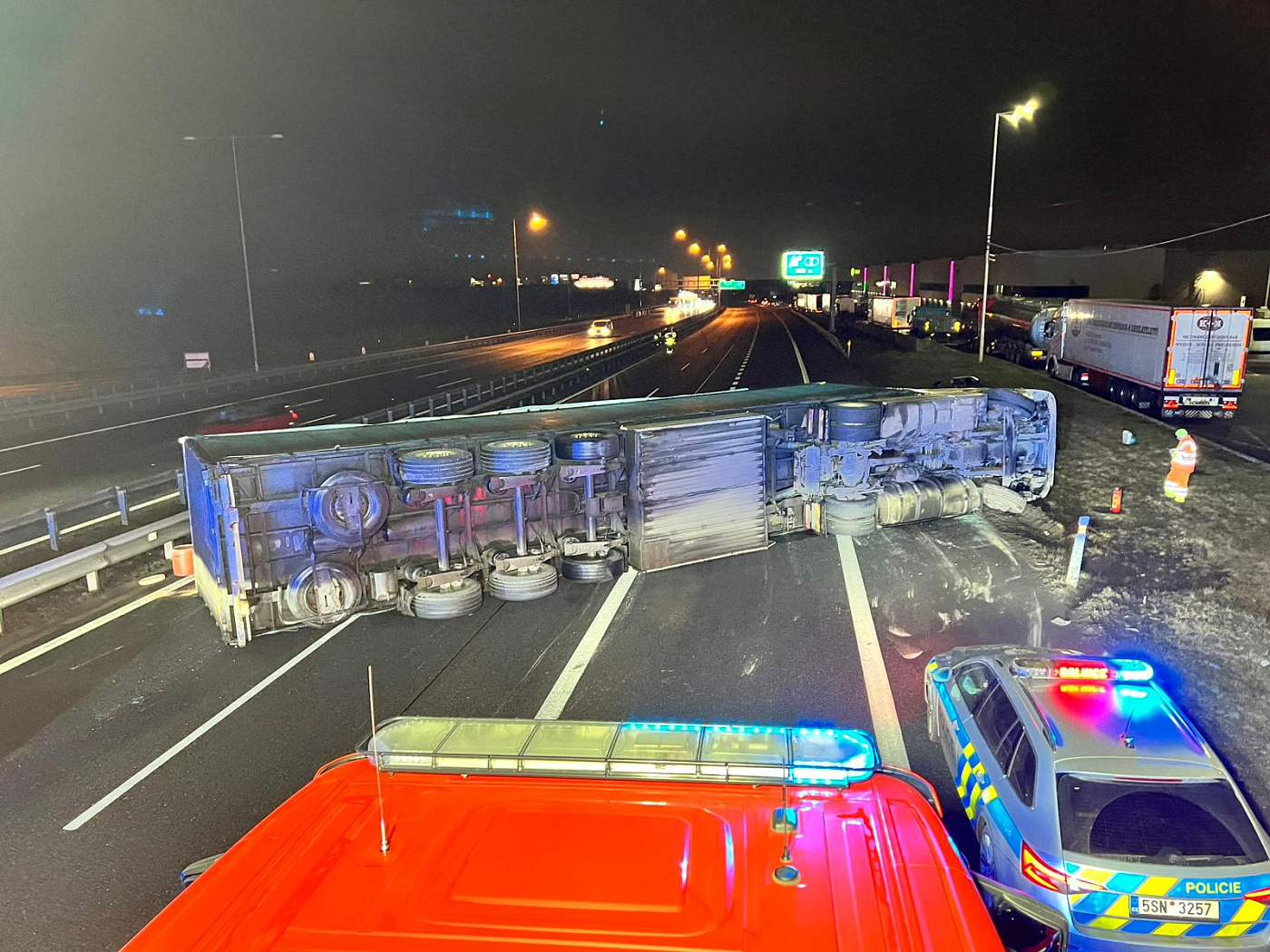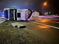 Krátce před půl osmou byla na linku tísňového volání Hasičského záchranného sboru Středočeského kraje oznámena dopravní nehoda kamionu na 10. kilometru dálnice D1 ve směru na Prahu.