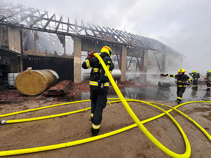 Nasazení 14 jednotek hasičů si vyžádal rozsáhlý požár skladovacích prostor v Dolní Rovni