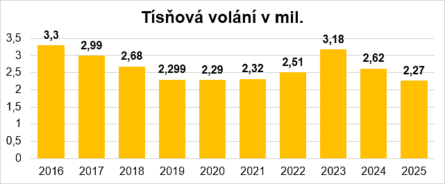 Jednotné evropské číslo tísňového volání je v České republice dlouhodobě hlavním kontaktním bodem pro přivolání pomoci v případě ohrožení života, zdraví nebo majetku. V roce 2025 přijali operátoři tísňové linky 112 celkem 1 995 395 volání a 33 035 SMS, na tísňové lince 150 bylo v roce 2025 přijato 277 353 volání a 31 411 SMS.
