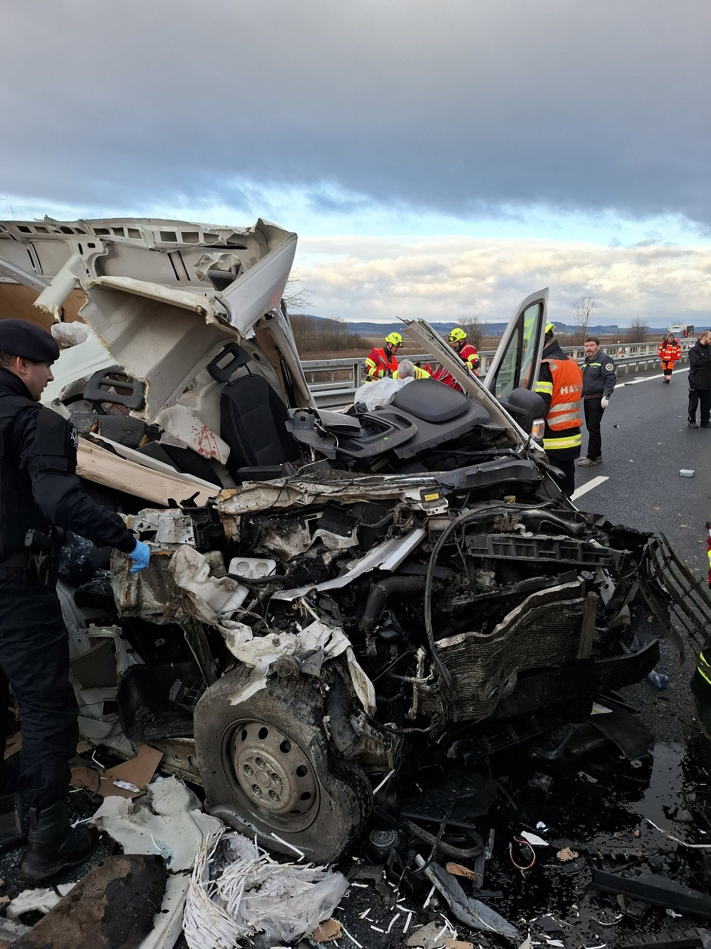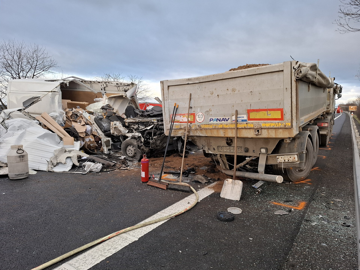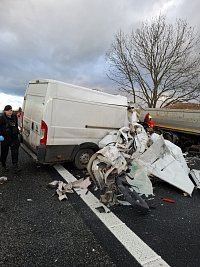 Podle prvotních informací nákladní automobil zastavil na krajnici z důvodu závady, přičemž zasahoval do pravého jízdního pruhu. Do něj zezadu narazila dodávka. V ní jel pouze řidič, který na místě zemřel.