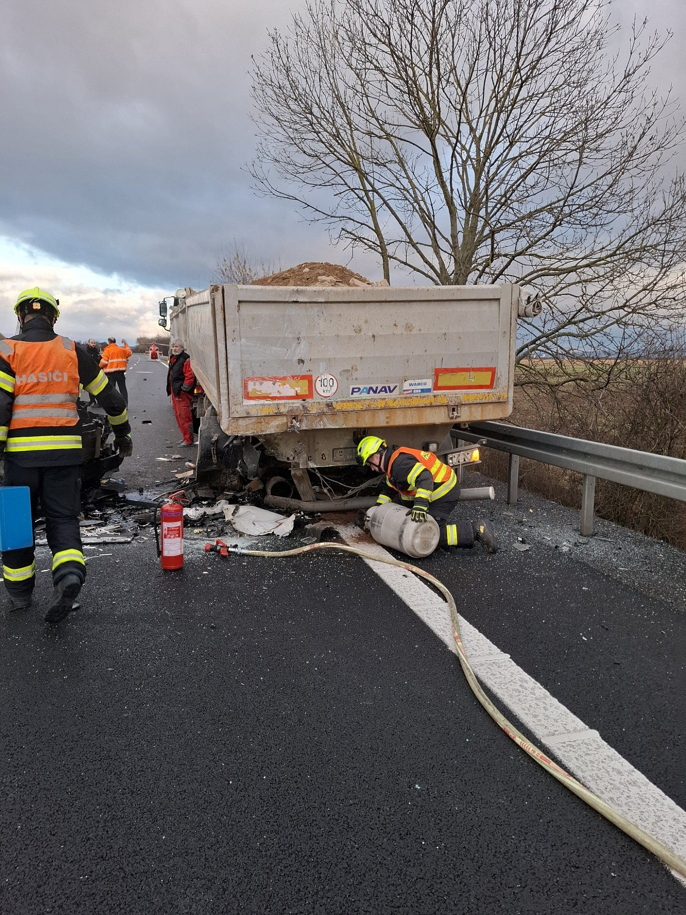 Tragická nehoda uzavřela dálnici D35, řidiče vyprostila okolo jedoucí dobrovolná jednotka z Fulneku