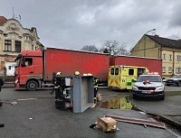 V ulici Svat. Čecha v Jaroměři se srazil náklaďák s multikárou. Nehoda byla na tísňovou linku ohlášena se zraněním. Operační středisko na místo vyslalo místní profesionální jednotku a kolegy z královehradecké stanice Pražská.