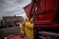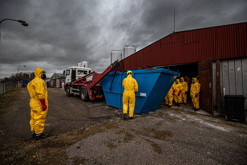 Profesionální hasiči z Královéhradeckého kraje likvidují společně se Záchranným útvarem HZS ČR v obci Kosičky 6800 nakažených kachen