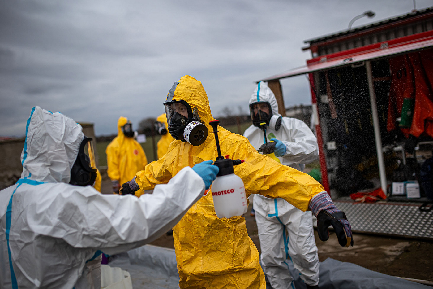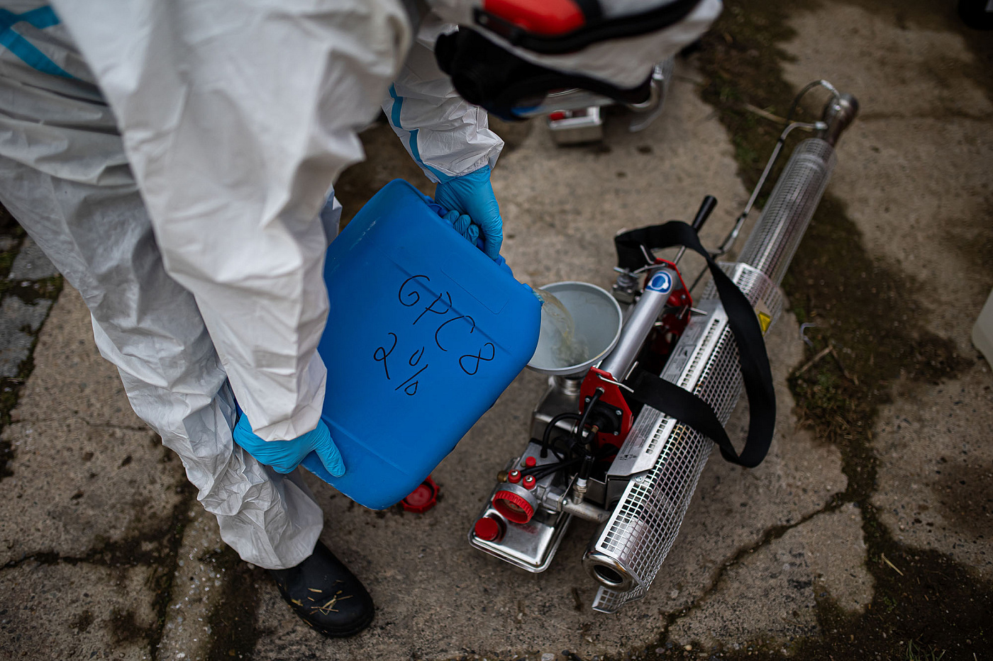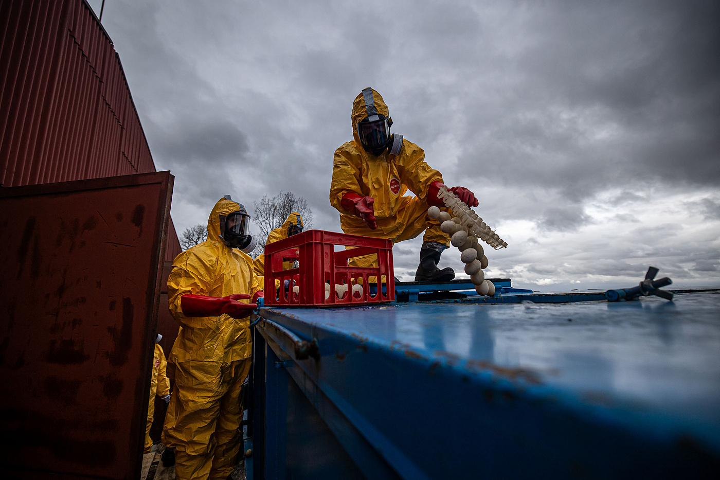 Na místě zasahovalo asi 50 profesionálních hasičů ze všech územních odborů HZS Královéhradeckého kraje a Záchranného útvaru HZS ČR (dislokace Hlučín). Pod dohledem veterinářů a ve spolupráci s místními zaměstnanci vynášeli hasiči drůbež z hal, kachny byly ukládány do připravených kontejnerů s oxidem uhličitým. Vzhledem k charakteru nákazy využívali zasahující osobní ochranné prostředky – jednorázový ochranný oblek, obličejové masky, holínky a rukavice. V místě bylo zřízeno také dekontaminační stanoviště osob, dekontaminaci techniky zabezpečovali příslušníci Záchranného útvaru HZS ČR. Po vyprázdnění hal provedli hasiči jejich desinfekci.