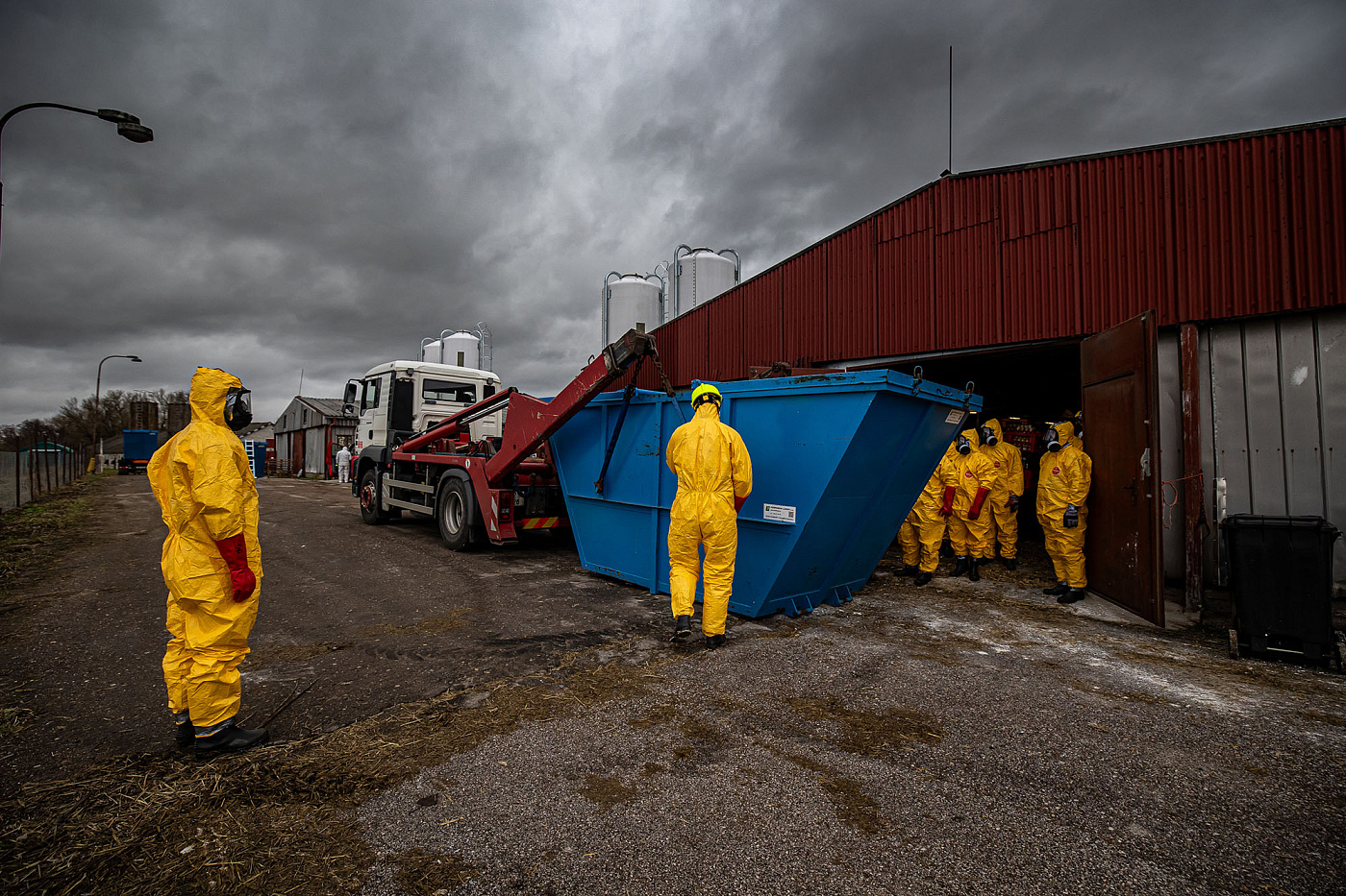Profesionální hasiči z Královéhradeckého kraje likvidují společně se Záchranným útvarem HZS ČR v obci Kosičky 6800 nakažených kachen