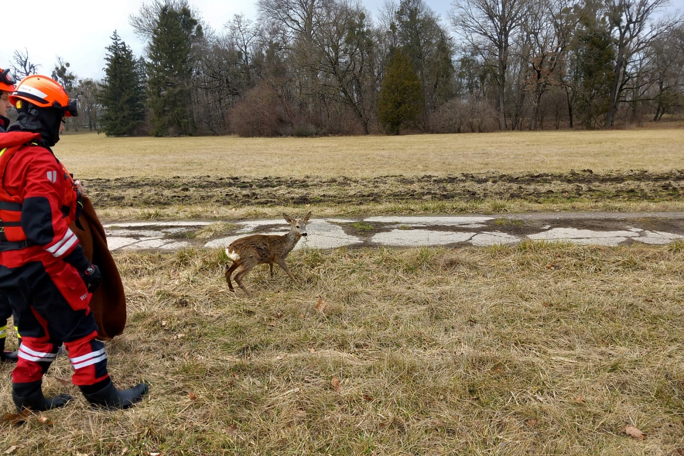 Třináct minut po třinácté hodině vyjeli do ulice 21. dubna v Lednici na Břeclavsku místní dobrovolní hasiči společně s jednotkou profesionálních hasičů z centrální hasičské stanice Břeclav k záchraně topící se srnky.