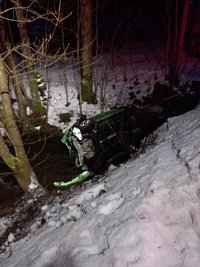K dopravní nehodě osobního vozidla vyjeli sedm minut po sedmnácté hodině do katastru obce Žacléř do místní části Prkenný důl na Trutnovsku profesionální hasiči ze stanic Trutnov a Velké Poříčí společně s místní dobrovolnou jednotkou.