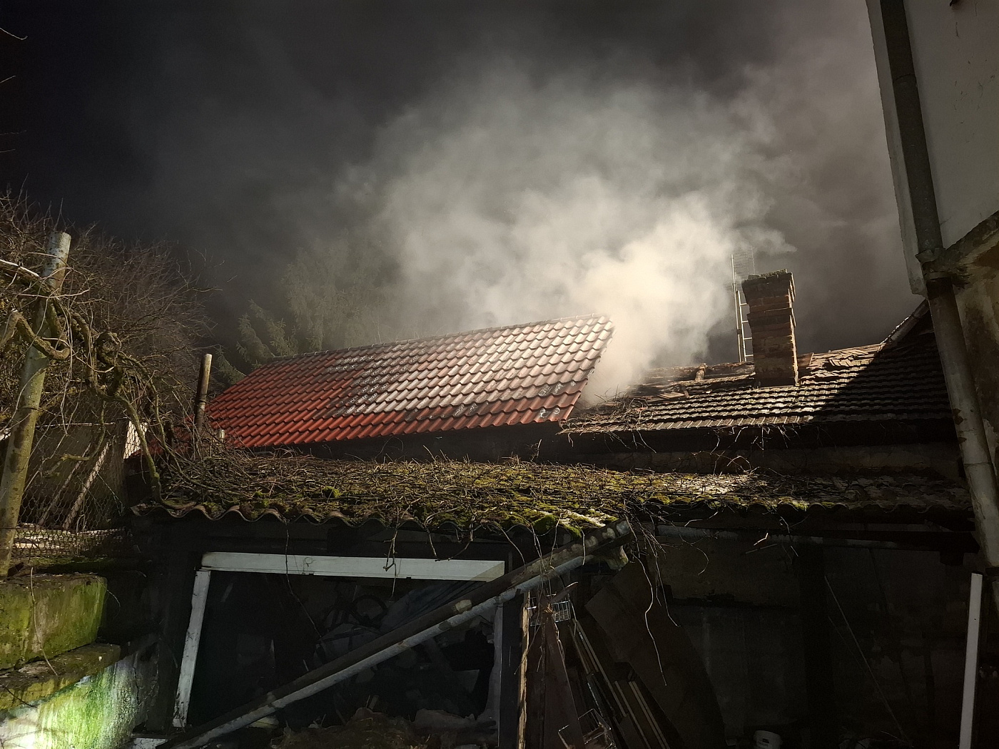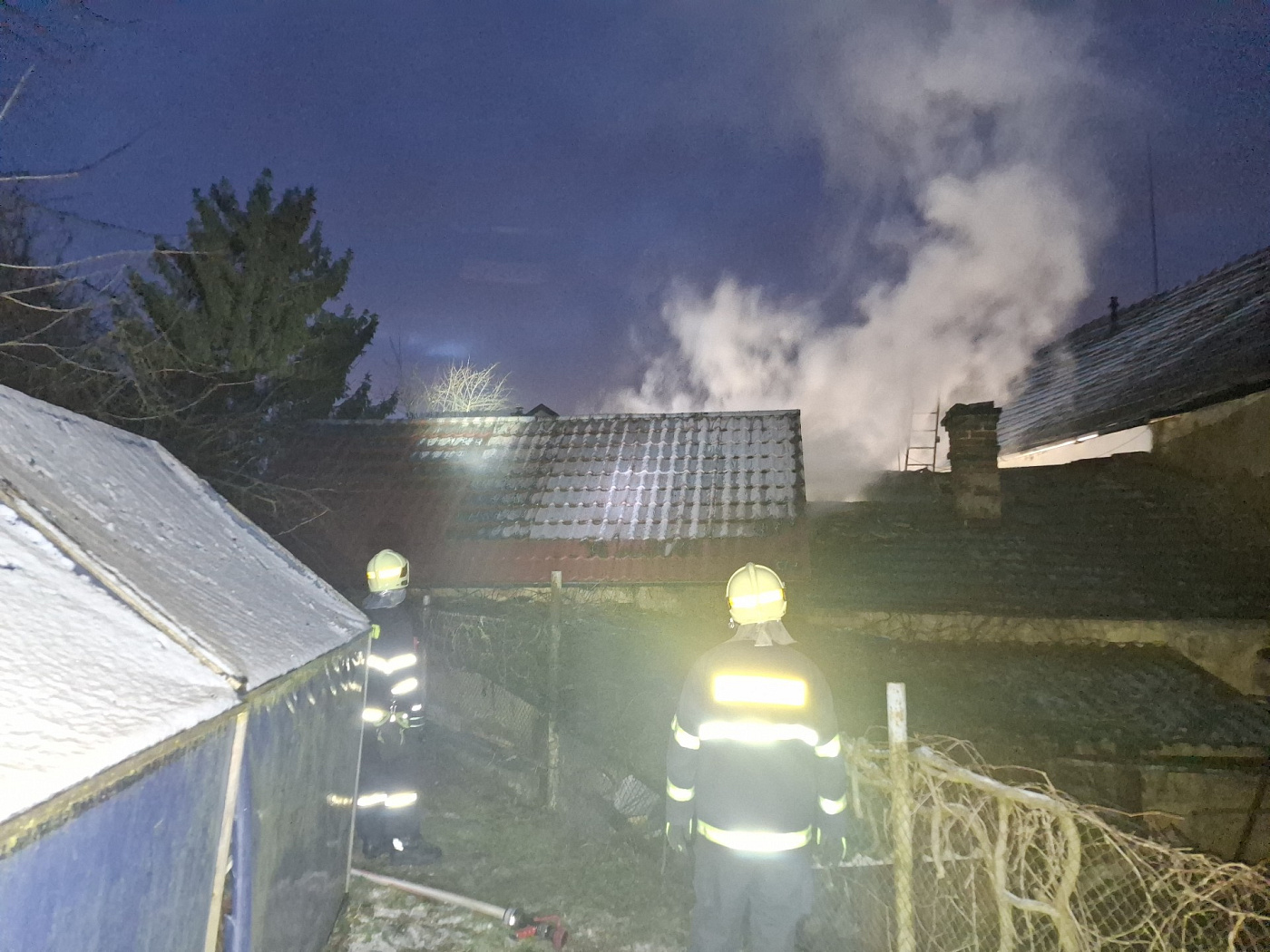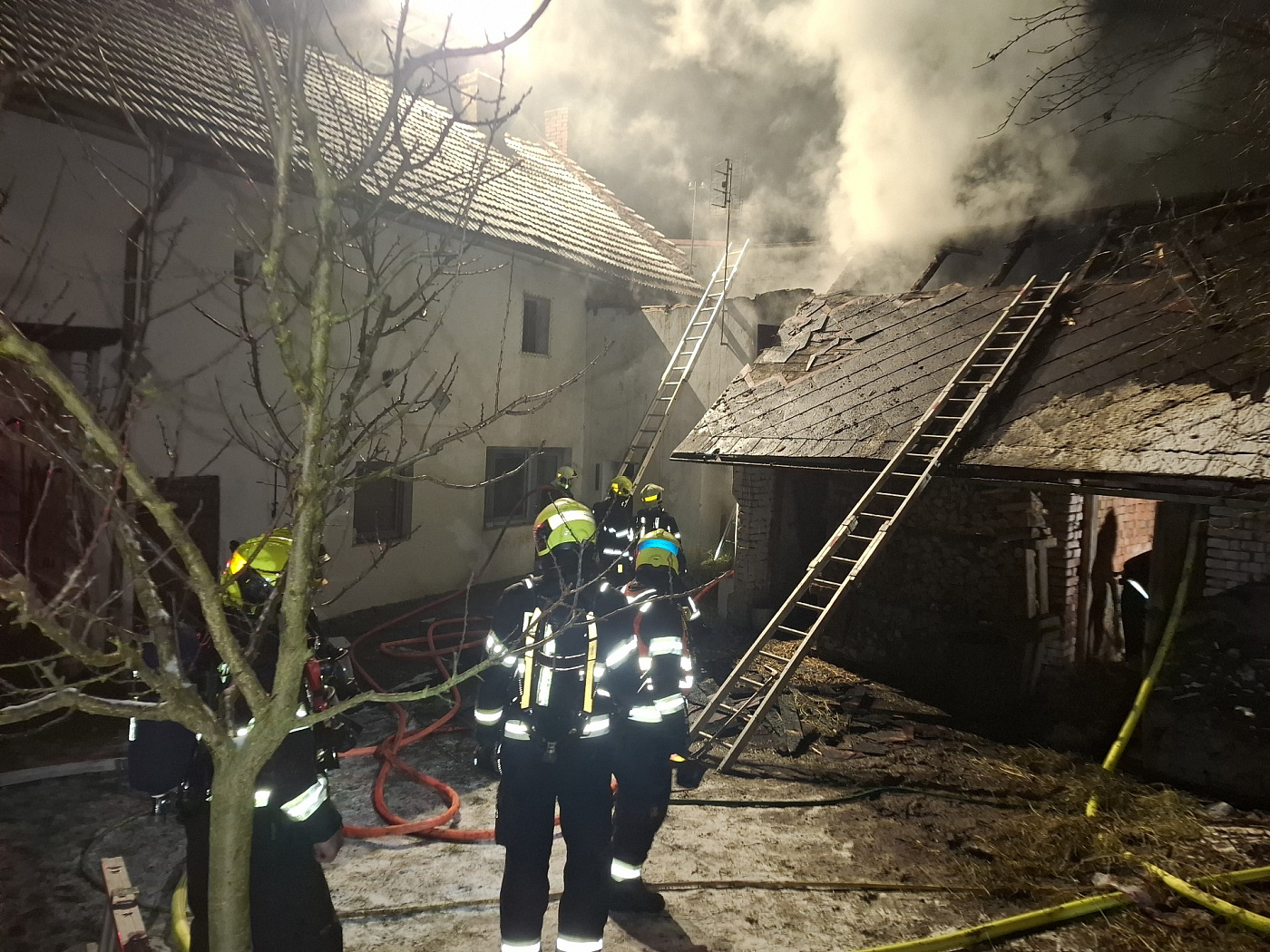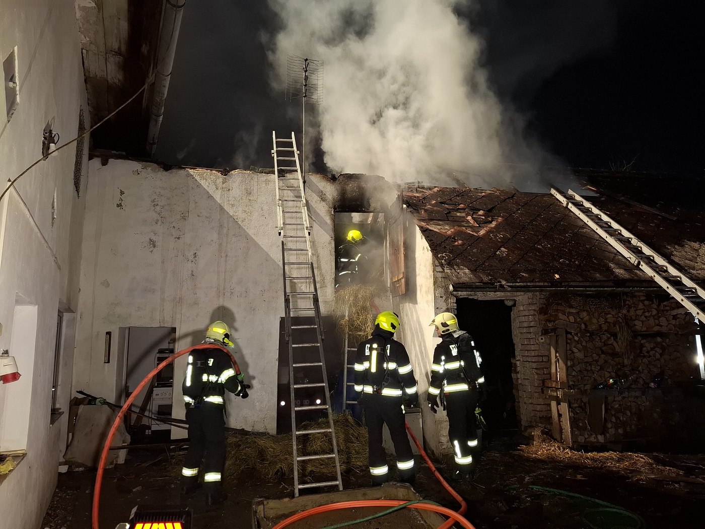 Oheň se z prostoru dvora rozšířil po zdi do přístavby seníku na sousedním pozemku. Díky zásahu hasičů se podařilo uchránit další části objektů a obytná část domů tak nebyla ohněm zasažena. Hasiči požár zklikvidovali nasazením 5 C proudů, nasazena byla i výšková technika z důvodu osvětlení zásahu, monitoringu a průzkumu termokamerou.
