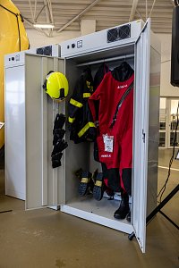 Ostravští dobrovolní hasiči tak budou mít při výjezdech do terénu k provádění technických zásahů k dispozici též pořízené přilby, včetně ochranných brýlí, v reflexní barvě a s reflexními prvky. Součástí 180 kusů přileb je prvek k uchycení hasičských svítilen. Brýle jsou prachotěsné, mají panoramatický zorník, chránící oči. Zakoupeno bylo i 44 kusů suchých obleků pro práci ve vodě a na zamrzlých hladinách, z vodotěsného, membránového nylonového materiálu, který své vlastnosti zachová i za velmi nízkých teplot do mínus 15 stupňů Celsia a je odolný i ve vodě, částečně kontaminované ropnými produkty. Oblek je střihově jednoduchý, pro maximální rychlost a snadnost oblékání, přizpůsobený uživateli. Ostravské jednotky budou dovybaveny také 22 kusy sušících skříní k vysoušení zásahových ochranných prostředků (zásahových oděvů, obuvi, ochranných rukavic), pracující na principu neustálé cirkulace proudu teplého vzduchu.