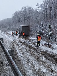 Profesionální jednotky z obou královehradeckých stanic zasahují spolu s JSDHO Chlumec nad Cidlinou na D11 v katastru Dobřenic. Hlášena je tam dopravní nehoda nákladního automobilu. Vozidlo vyjelo mimo dálnici, nehoda je bez zranění.