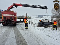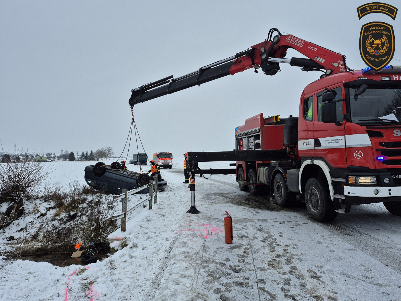 Vzhledem k poloze vozidla a náročnému terénu si velitel zásahu vyžádal na místo také vyprošťovací automobil ze stanice Zlín. Po zadokumentování nehody ze strany Policie ČR mohli hasiči přistoupit k samotnému vyproštění. Pomocí vyprošťovací techniky byl zdemolovaný vůz vytažen z koryta potoka a následně postaven na kola na volné ploše vedle komunikace tak, aby nebránil plynulosti silničního provozu a byl připraven k odtažení. Okolnosti nehody jsou nadále v šetření Policie ČR.