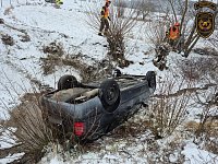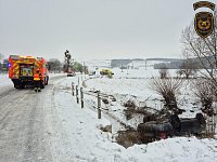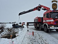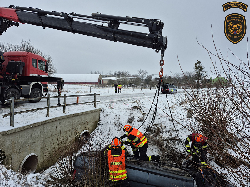 K dopravní nehodě došlo dnes před půl osmou ranní na zasněžené komunikaci u obce Kvasice na Kroměřížsku. Řidička osobního vozidla, která cestovala se dvěma dětmi, sjela mimo silnici, kde se automobil převrátil na střechu do koryta místního potůčku.