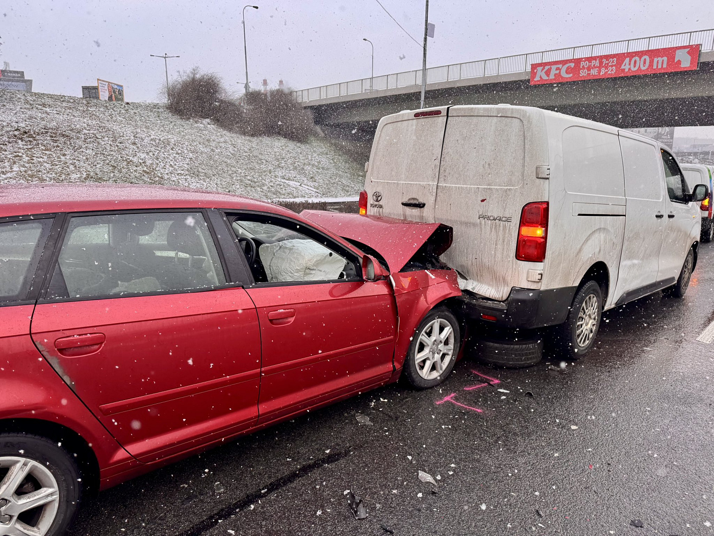 Na Rozvadovské spojce se srazila čtyři auta