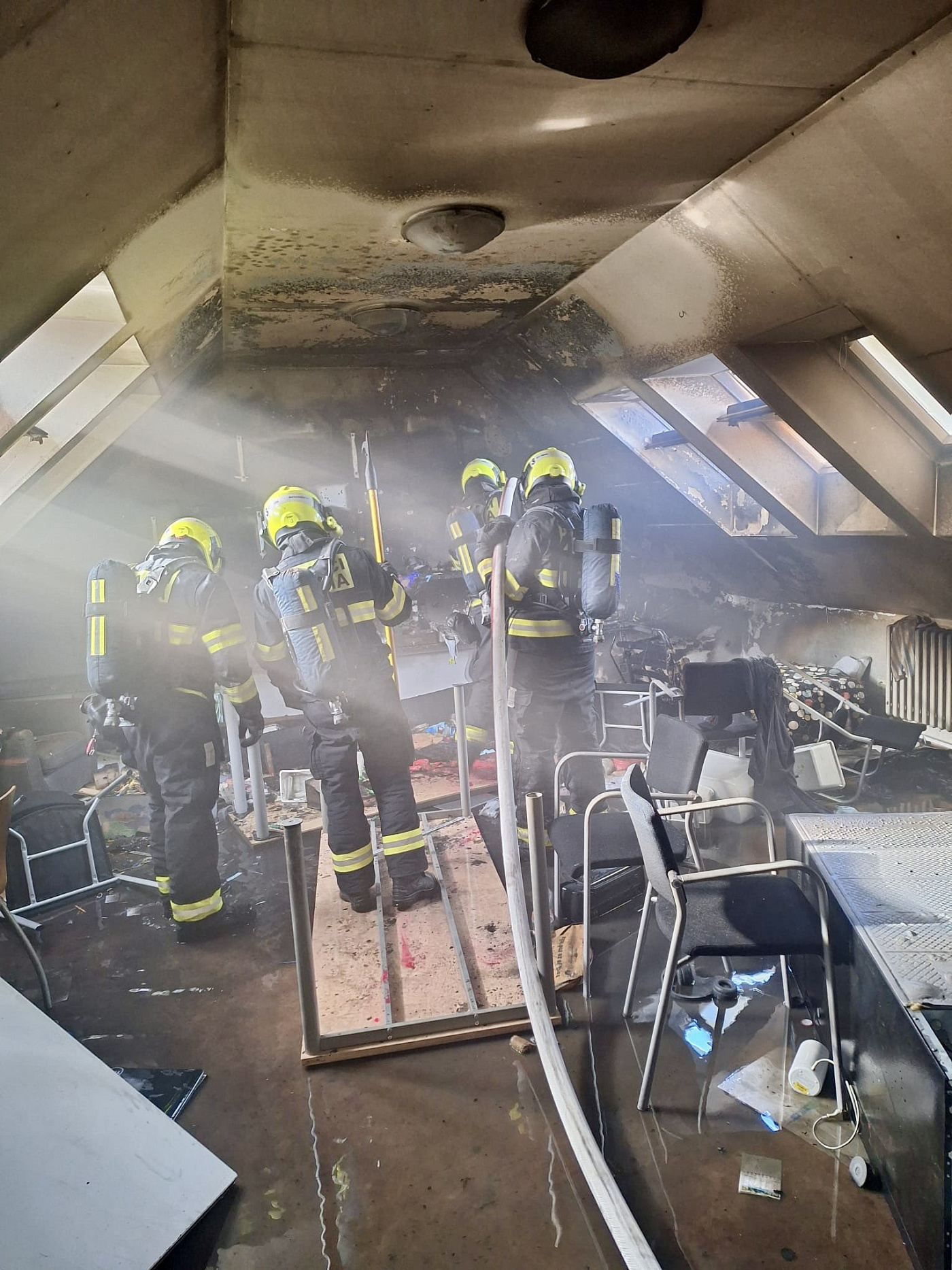 Ohnisko požáru bylo uhašeno, následovalo odvětrání zakouřených prostor budovy. Před příjezdem jednotek se evakuovalo 16 osob. Příčina požáru a výše škody je v šetření. Povoláni byli kriminalisté.