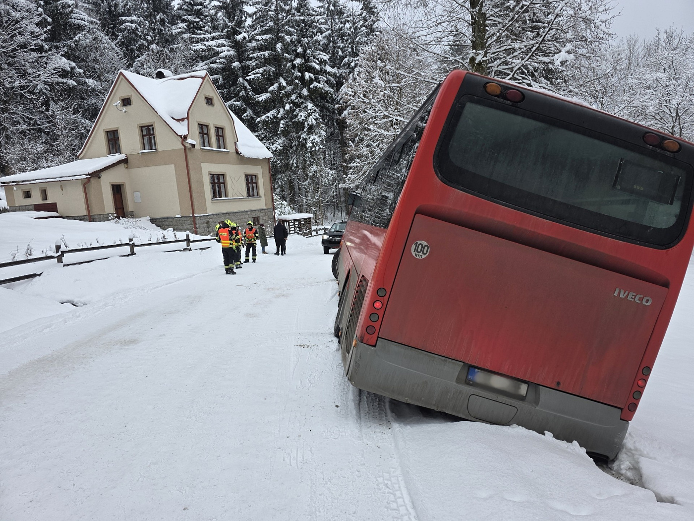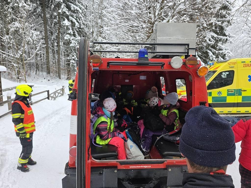 V Janově n. Nisou na komunikaci 3. třídy zasahují hasiči u dopravní nehody autobusu, který sjel mimo silnici a je zapadlý ve sněhu. V dopravním prostředku cestovalo s doprovodem několik desítek dětí.