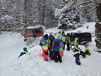 V Janově n. Nisou zapadl autobus, k převozu desítek dětí využili hasiči pásový speciál Hägglunds