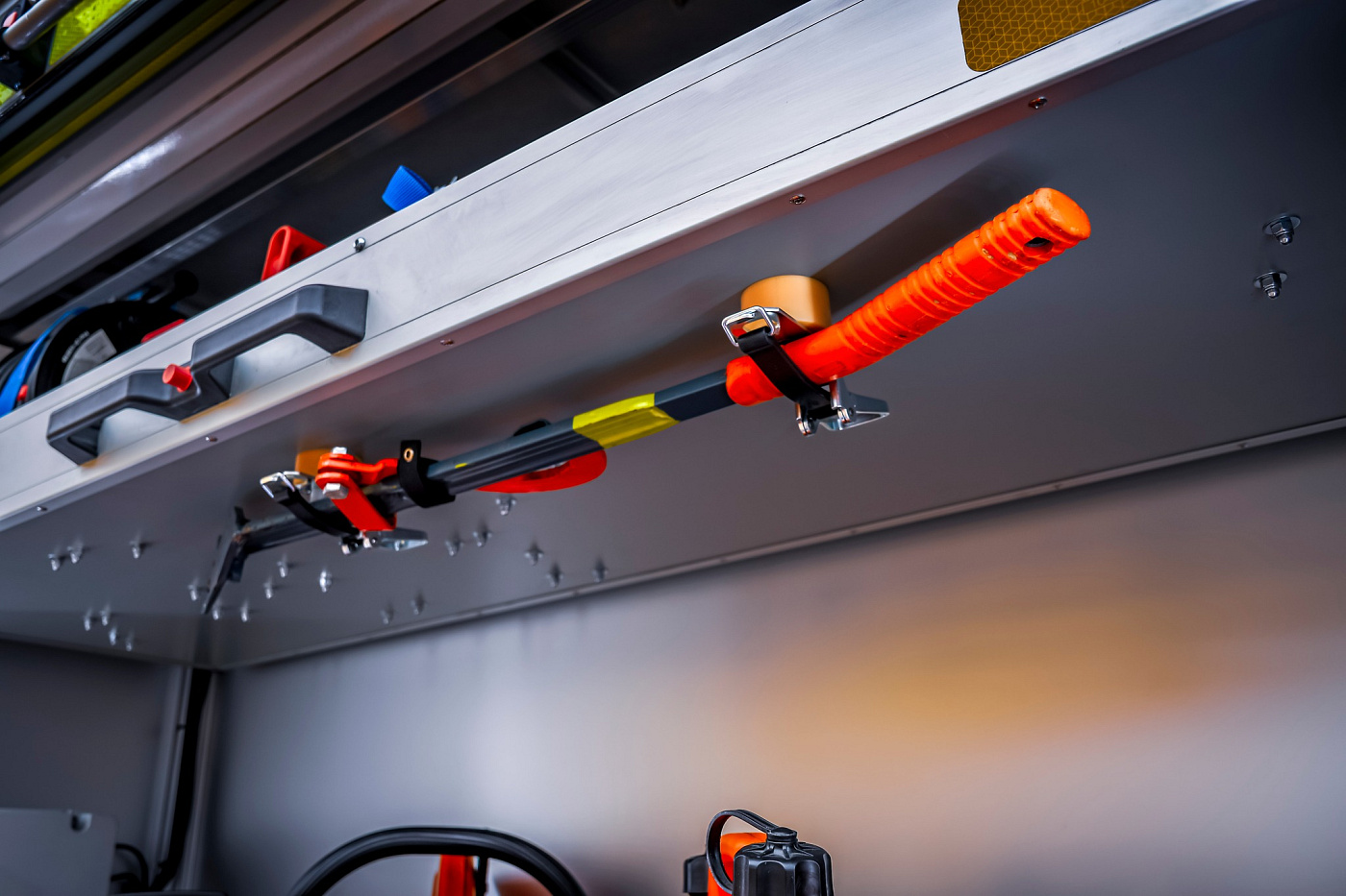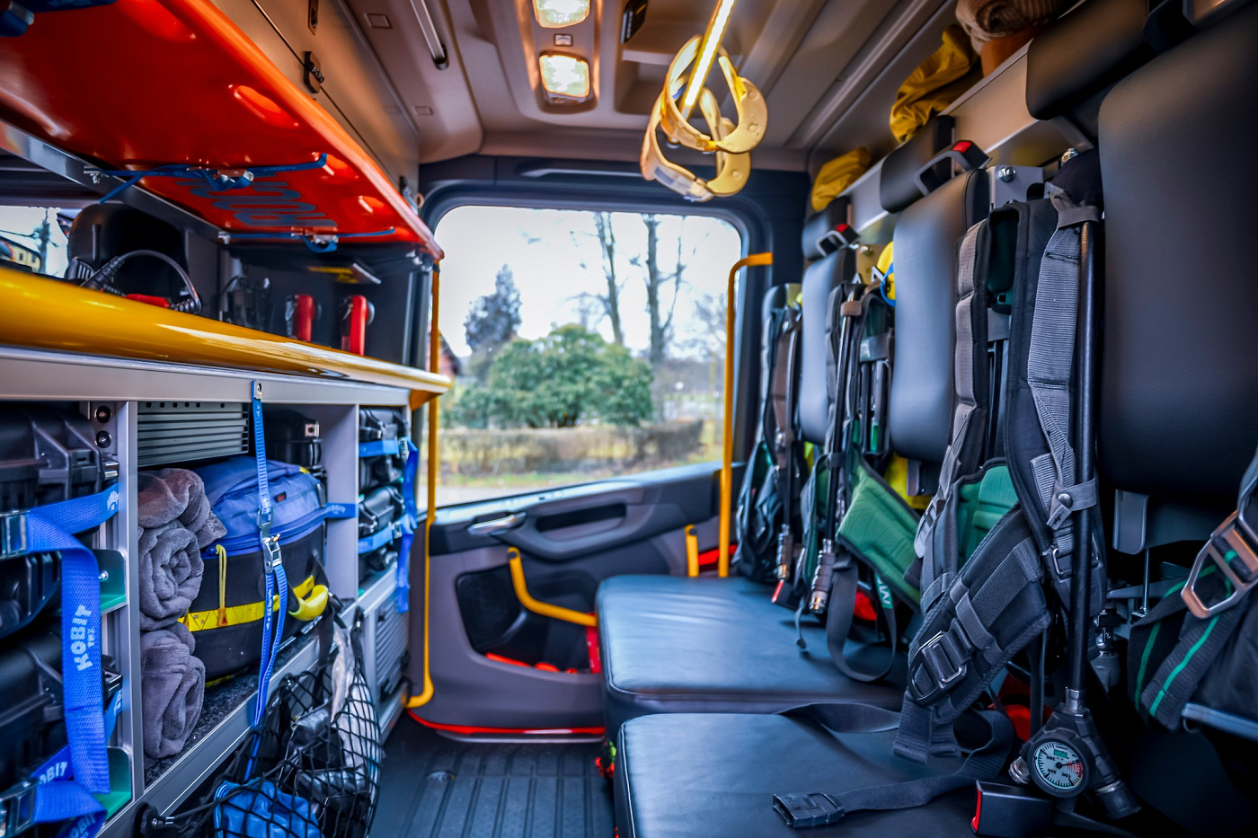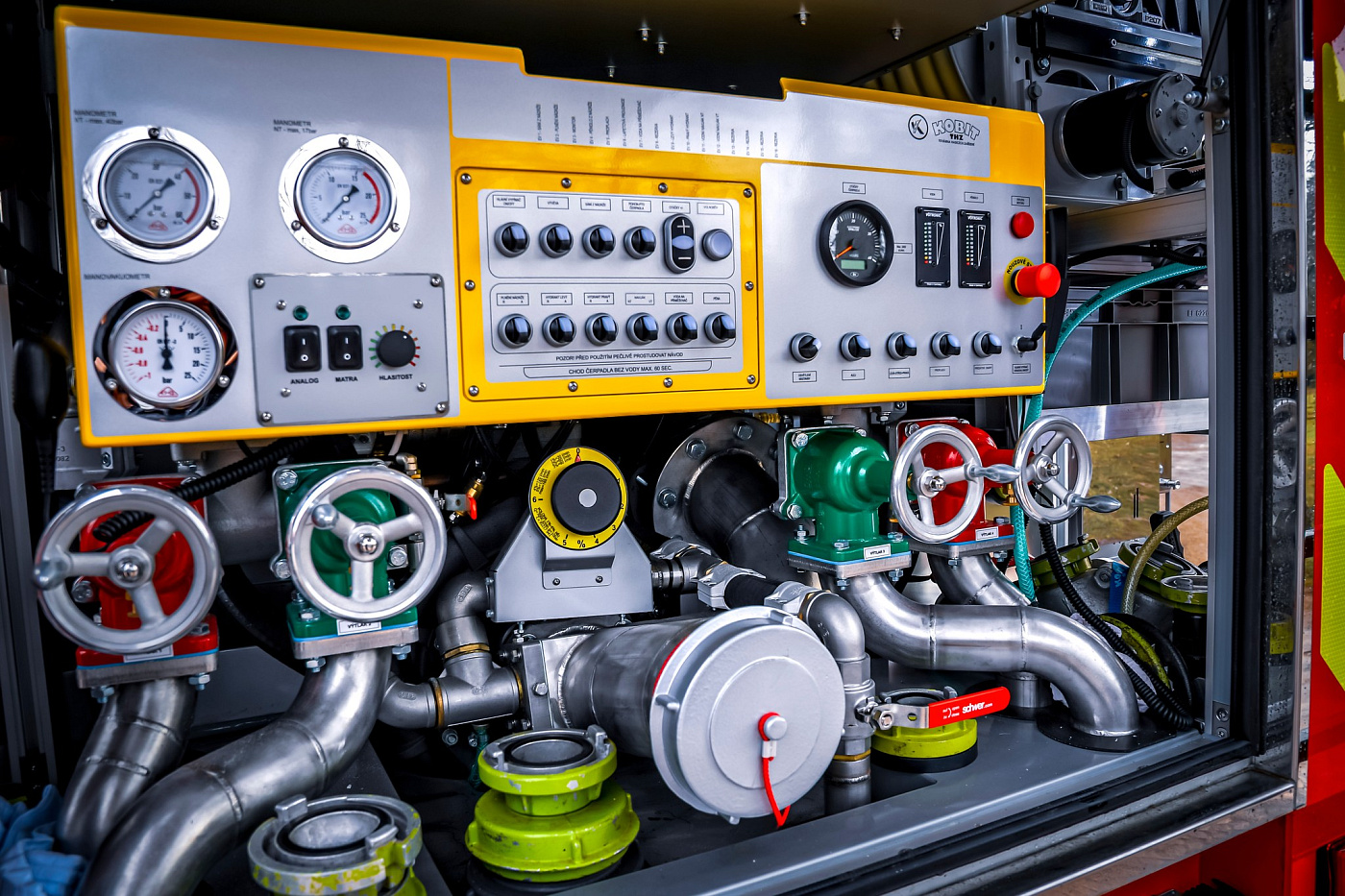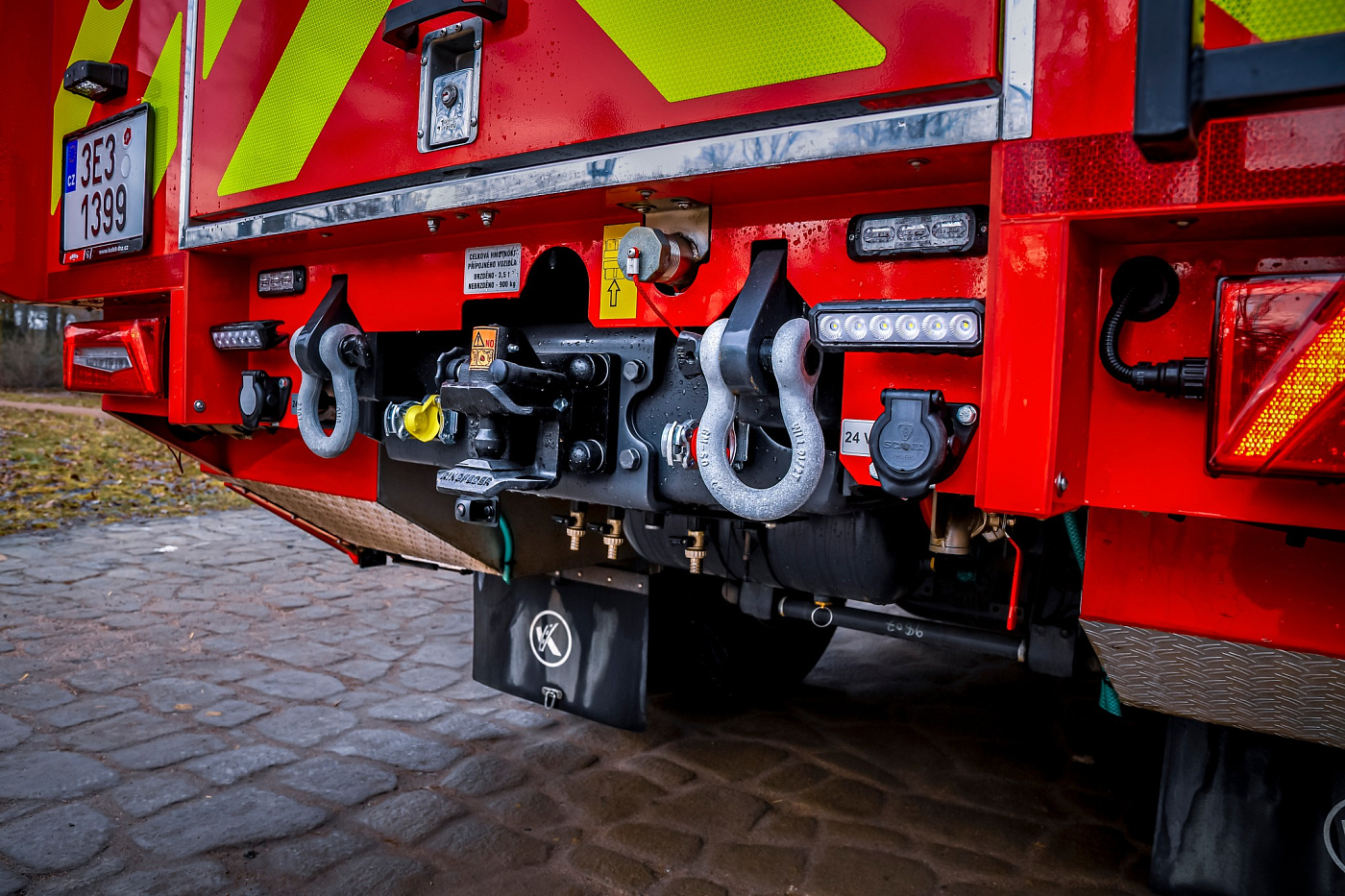 V přední části vozu na nárazníku najdeme elektrický lanový naviják s tažnou silou 50 kN. Nechybí ani nárazníková lafetová proudnice, která je ovládaná joystickem přímo z kabiny řidiče. Obsluha může plynule měnit průtok i tvar výstřikového kužele podle aktuální potřeby hašení.