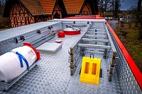 Karoserie účelové nástavby je vyrobena z profilů ze slitiny lehkých kovů a oplechována hliníkovým plechem při použití technologie prizmatických šroubovaných spojů a lepení.