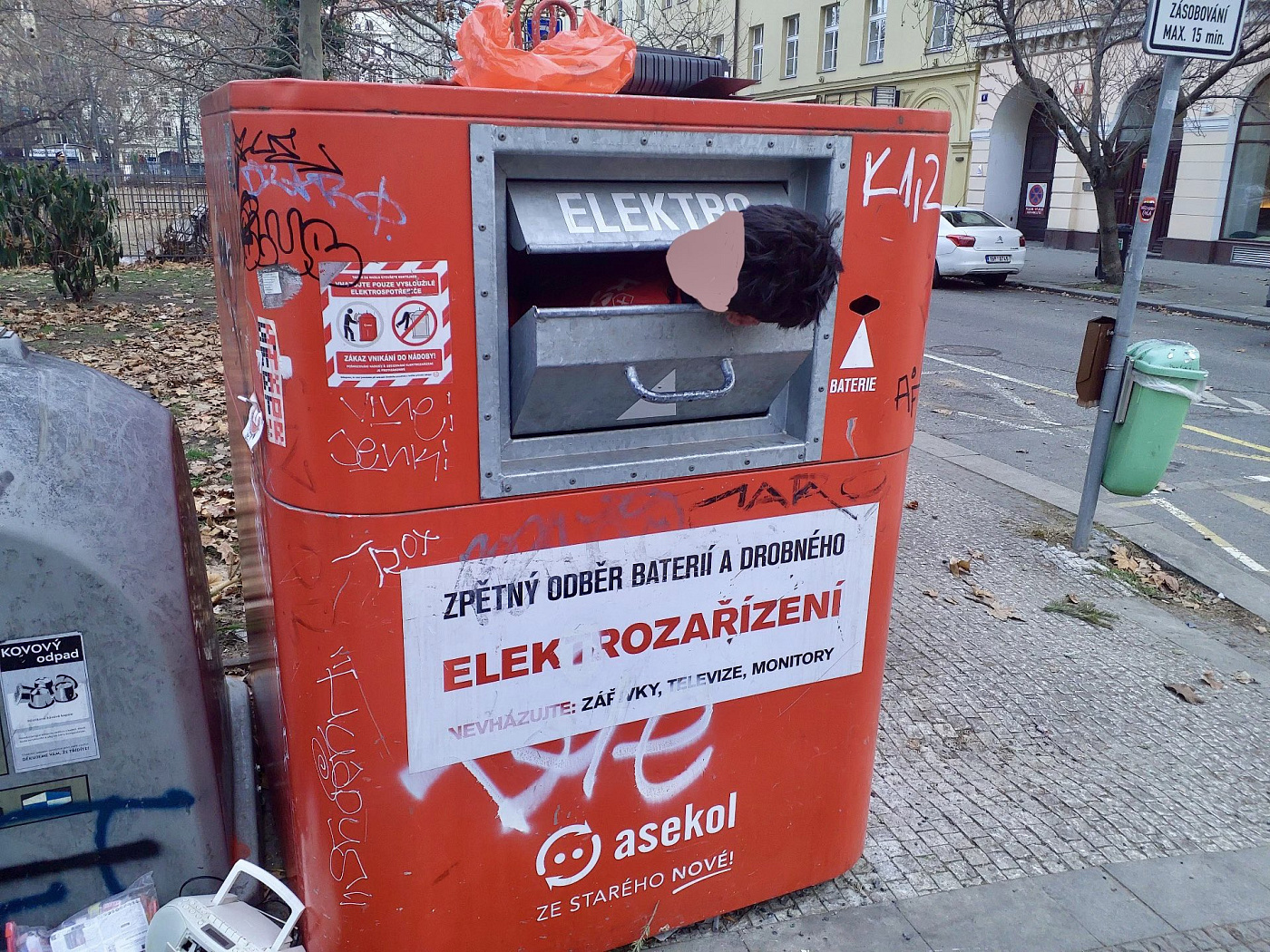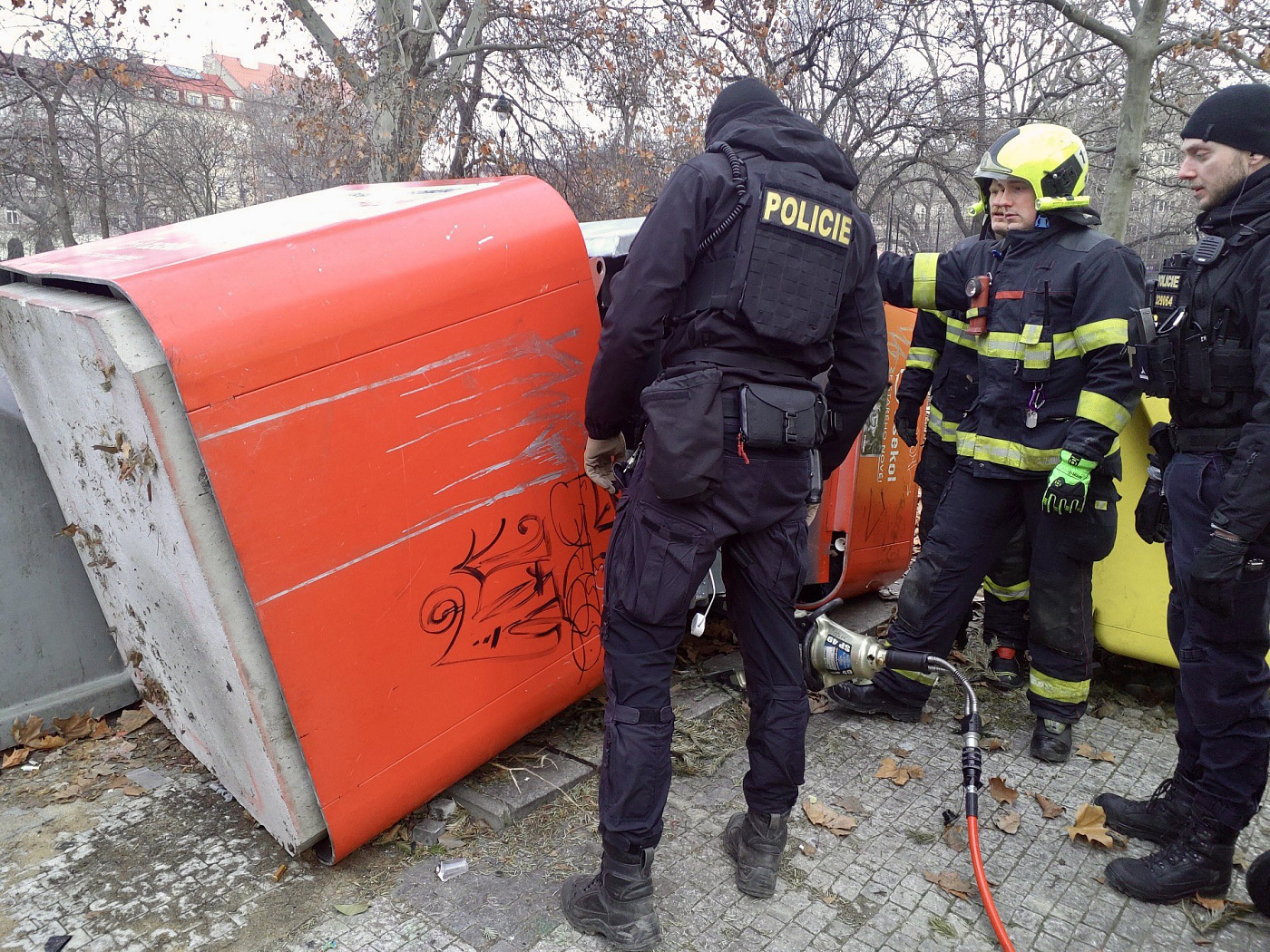 Hasiči ze Sokolské stanice dnes v pražském Karlíně zachraňovali osobu, která se zasekla v kontejneru na elektroodpad. Osoba byla vyproštěna bez zranění.