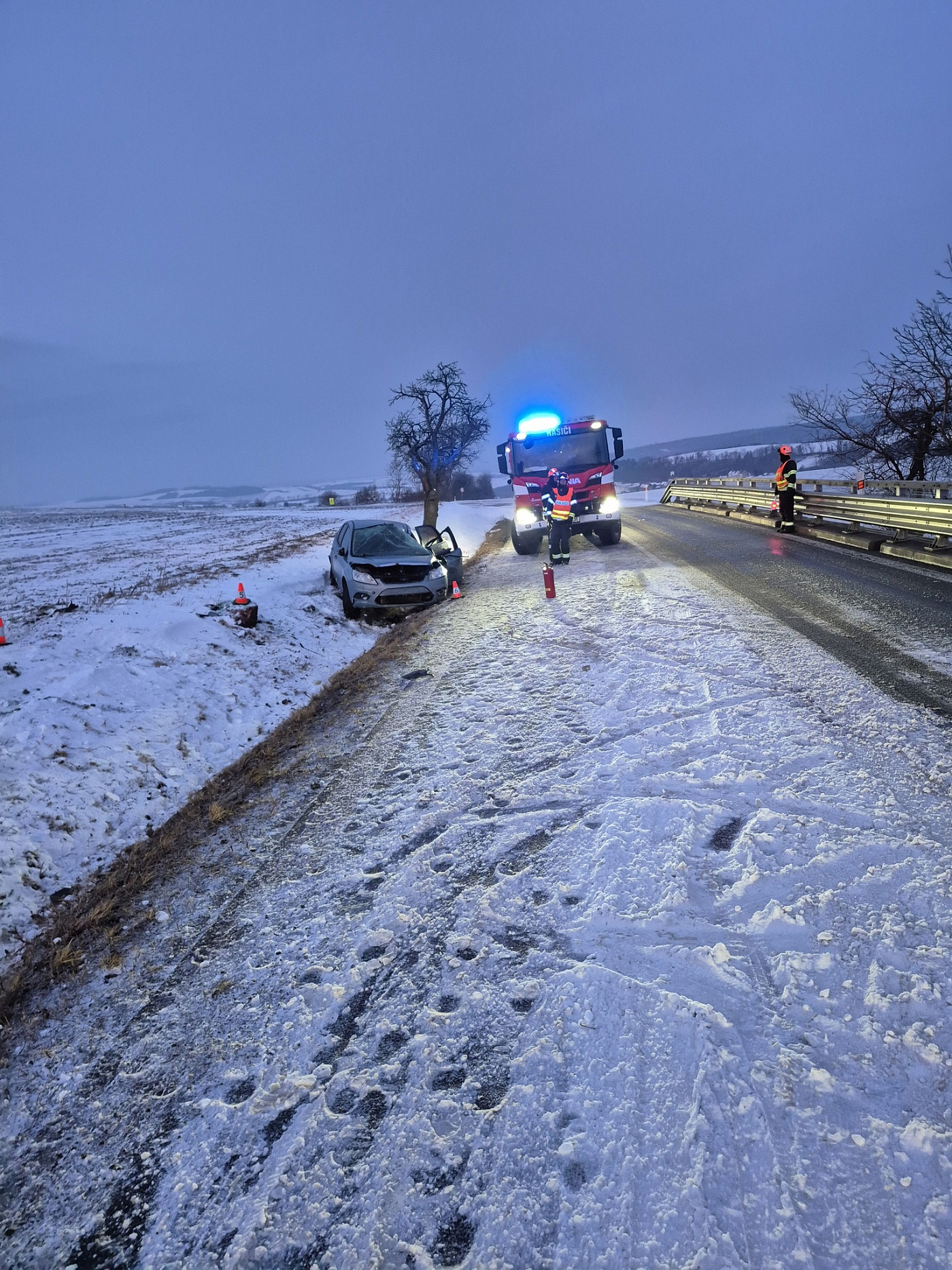 Dnes krátce před šestou hodinou ranní došlo u obce Chvalnov-Lísky na Kroměřížsku na zasněžené a kluzké komunikaci k dopravní nehodě osobního vozidla. Řidič zde sjel mimo vozovku a s vozidlem skončil v příkopě.