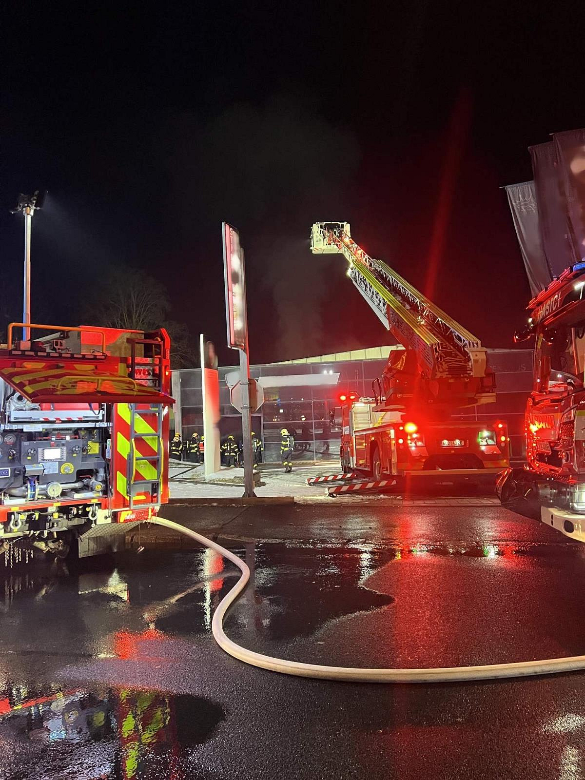 Požár v autosalonu v České Lípě kolem půlnoci zaměstnal pět jednotek hasičů
