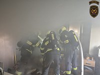 Po příjezdu byl dům silně zakouřený. Hasiči nasadili dva hasební proudy k likvidaci požáru a současně provedli přirozené odvětrání objektu. Požár se podařilo dostat pod kontrolu během několika minut. Jednotky také poskytly majiteli první předlékařskou pomoc, následně byl ošetřen zdravotnickou záchrannou službou.