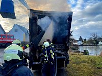 Hořící papírový odpad v popelářském voze zaměstnává hasiče v Jickovicích. Museli do vozu proříznout dva otvory, kterými dostali požár pod kontrolu.
