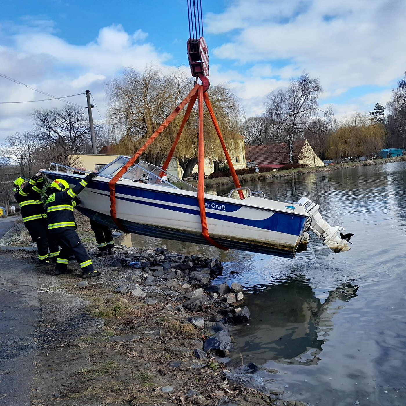Úspěšným zásahem skončila společná akce středočeských hasičů. K částečně potopenému motorovému člunu vyrazily jednotky profesionálů i dobrovolníků. Díky jejich rychlé reakci a nasazení těžké techniky se podařilo plavidlo zachránit a bezpečně dopravit na souš.