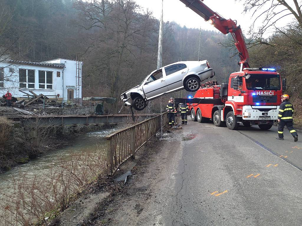 Profesionální hasiči ze stanice Blansko vyjížděli k nehodě v brzkých ranních hodinách. Po příjezdu na místo události, které se nacházelo u silnice směřující na Lažánky, zjistili, že havarované vozidlo je částečně potopené v řece.