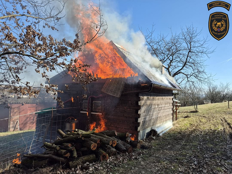 V Havřicích u Uherského Brodu hořela chata, hasičům zásah komplikoval podmáčený terén