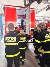 Žáci byli během své návštěvy svědky ostrého výjezdu jednotky. Slyšeli předpoplach, následný poplach a viděli, jakým způsobem se změní režim hasičské práce z organizačního na operační řízení.