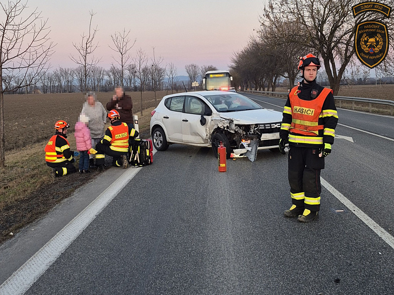 Před půl šestou odpoledne zasahovaly na silnici I/47 u Bílan na Kroměřížsku dvě cisterny ze stanice Kroměříž.