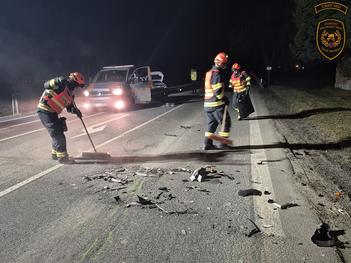 Při střetu osobních automobilů se zranily dvě osoby, které si do péče převzala zdravotnická záchranná služba. Po dobu vyšetřování nehody byla komunikace úplně uzavřena a jednotka prováděla nasvícení místa zásahu.