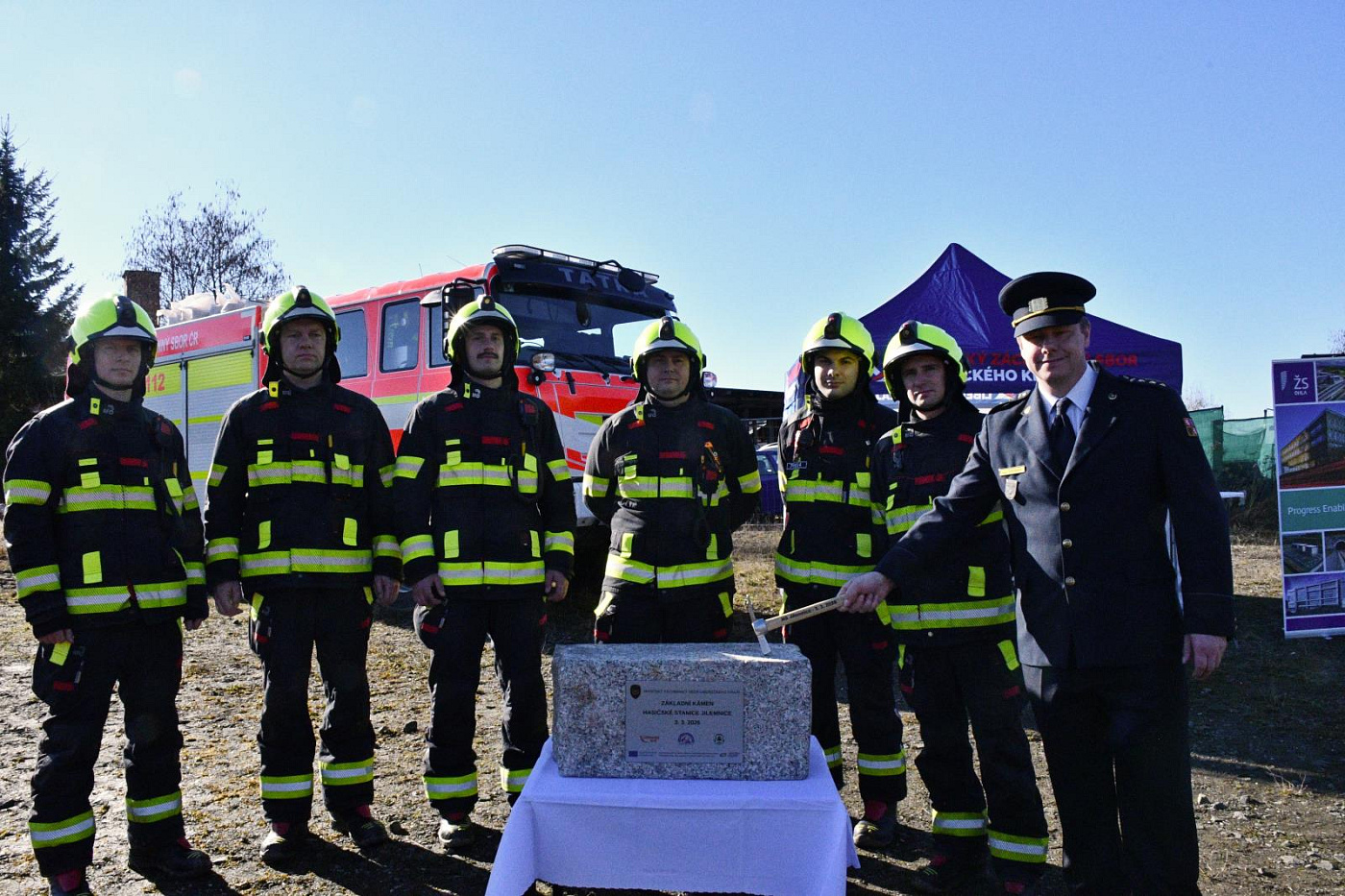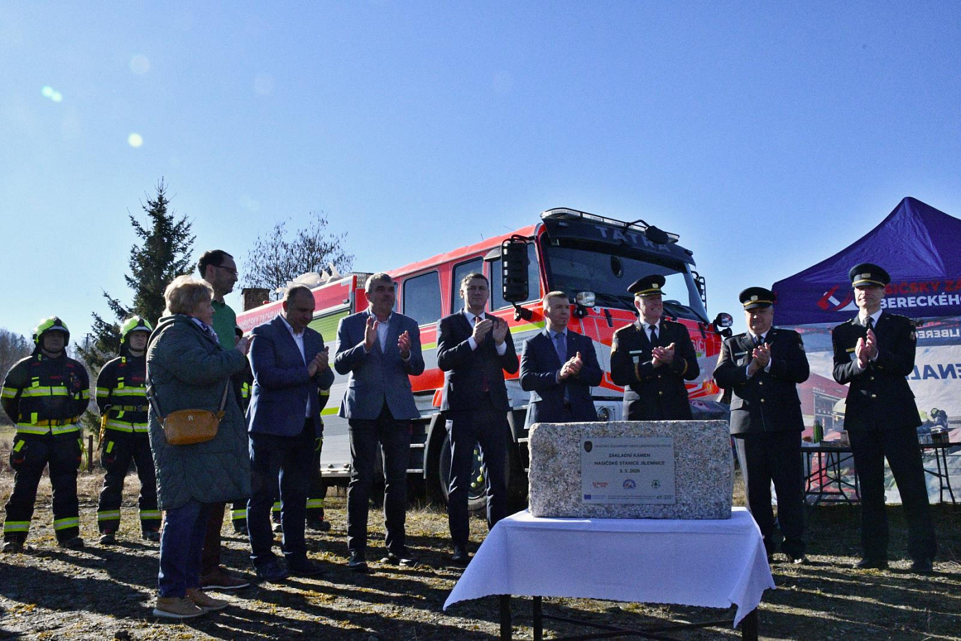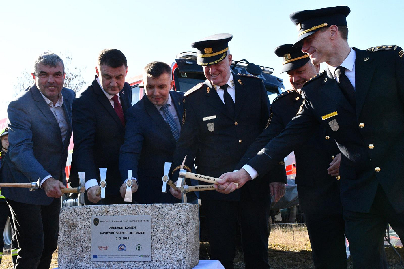 Slavnostního aktu se zúčastnili a na základní kámen budoucí hasičské stanice společně poklepali generální ředitel Hasičského záchranného sboru České republiky genpor. Vladimír Vlček, ředitel HZS Libereckého kraje plk. Jan Hadrbolec, hejtman Libereckého kraje Martin Půta, starosta města Jilemnice David Hlaváč, projektant Radek Vondra a zástupci zhotovitele stavby. Na místě nechyběli ani jilemničtí hasiči, kteří budou v nové stanici sloužit.